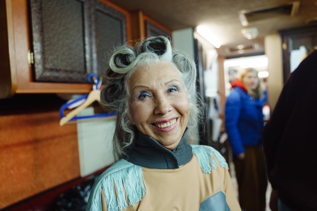 As in Radchenko’s previous productions there is a strong fashion element in her latest project. GRANDmothers features a selection of up-and-coming and established international designers with a strong focus on Russian labels, such as Outlaw Moscow, Roma Uvarov Design and Fakbyfak. Seeing fashion as a way to express one’s creativity, she highlights how age should not be a constraint when choosing what to wear. Radchenko engages with the viewers’ perception through an aesthetic of opposition. From the styling and production design to the make-up and hair, GRANDmothers challenges our own bias by having us reassess our expectations of what is beautiful, youthful and empowering.