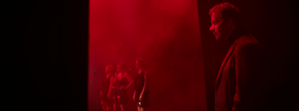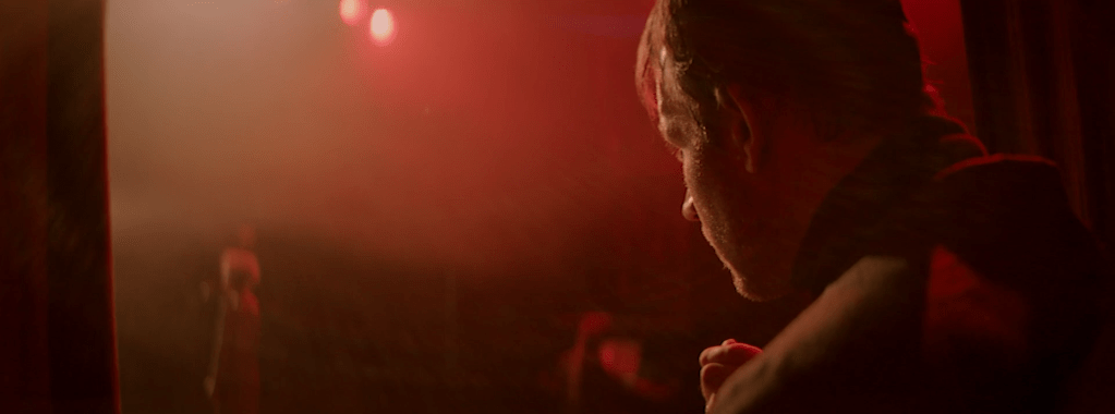 this is shown when the female lead goes on stage to perform, as this is the moment her lover falls