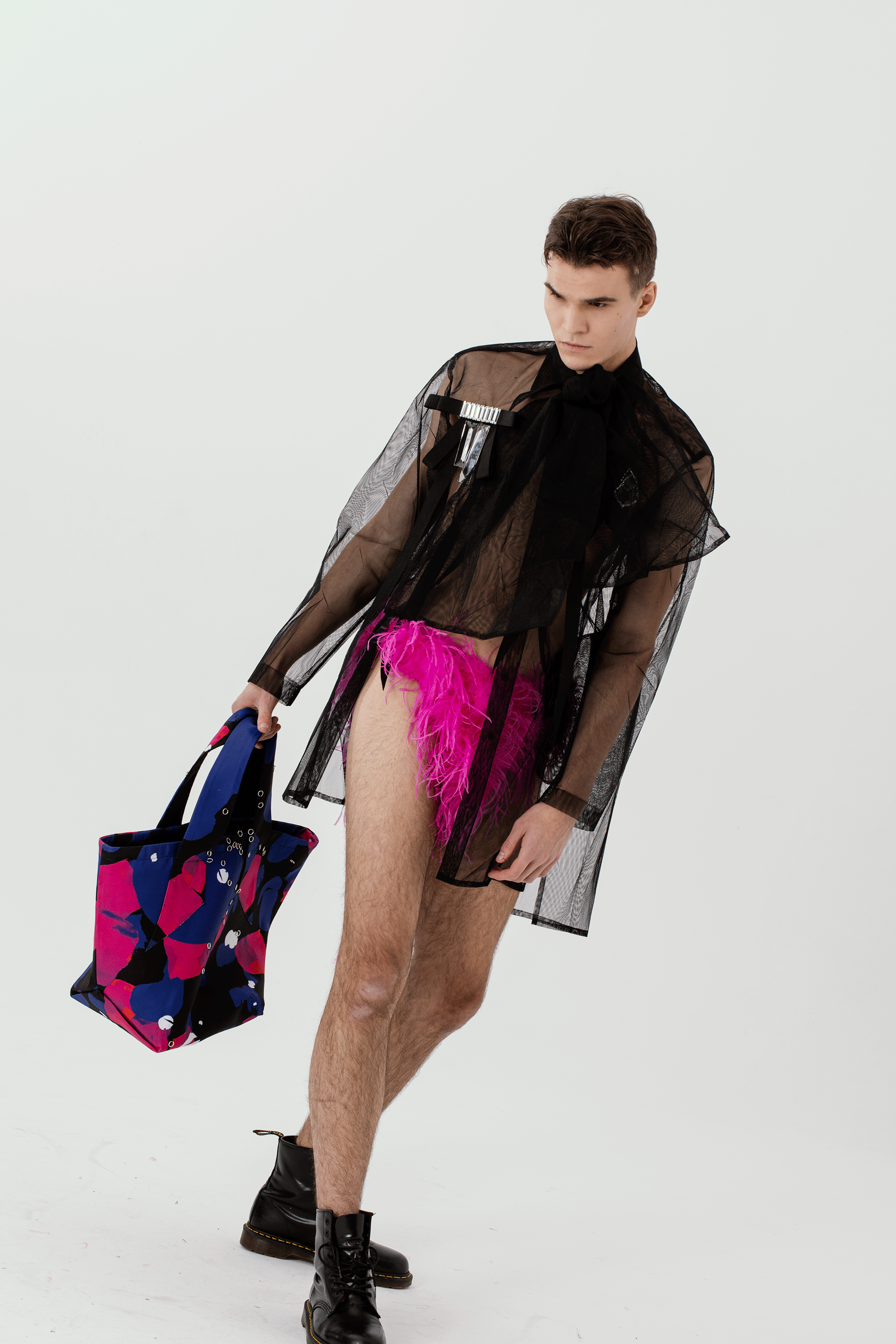 Collection THE ADORES is challenging stereotypical views of masculinity and femininity and making a connection between high and low culture. It draws on POP culture references, glamour and S&M, exploring the notion of alter-egos.