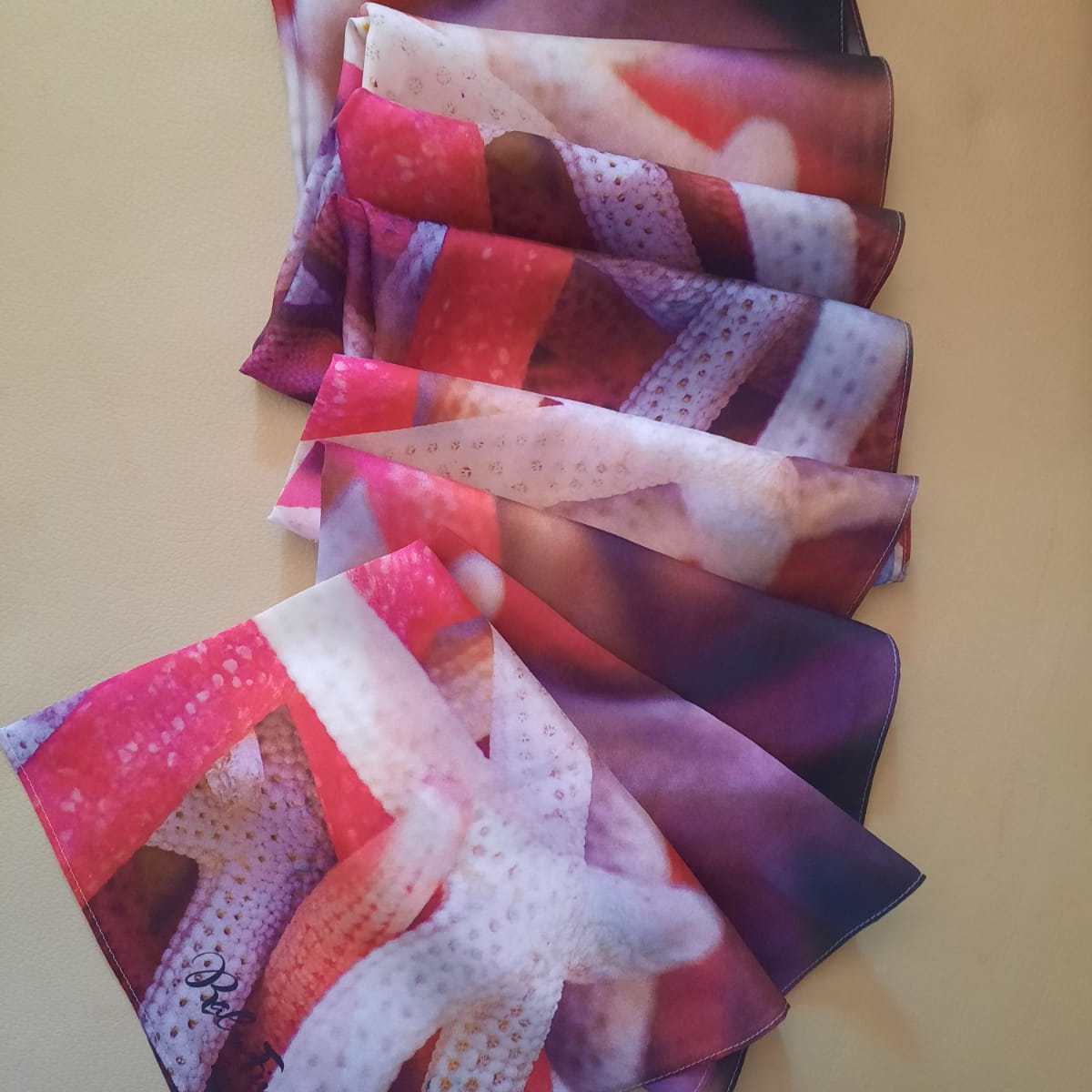 For scarves: ‘Breathtaking Contrasts’, ‘Garden’s Wonders’ and ‘Autumn Leaves’ in equal manner. They were a success.