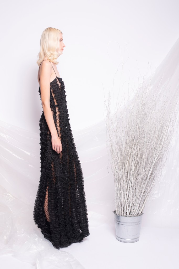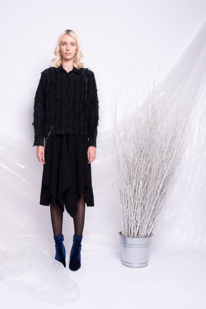 The New York based brand focuses on creating innovative, unconventional fashion while taking cues from modern art and music pioneers. The brand aims to design timeless wearable art garments with deconstructed silhouettes, infused with luxurious and intricate textiles.