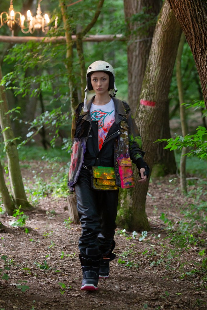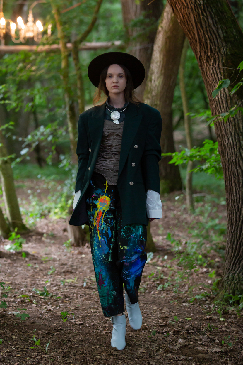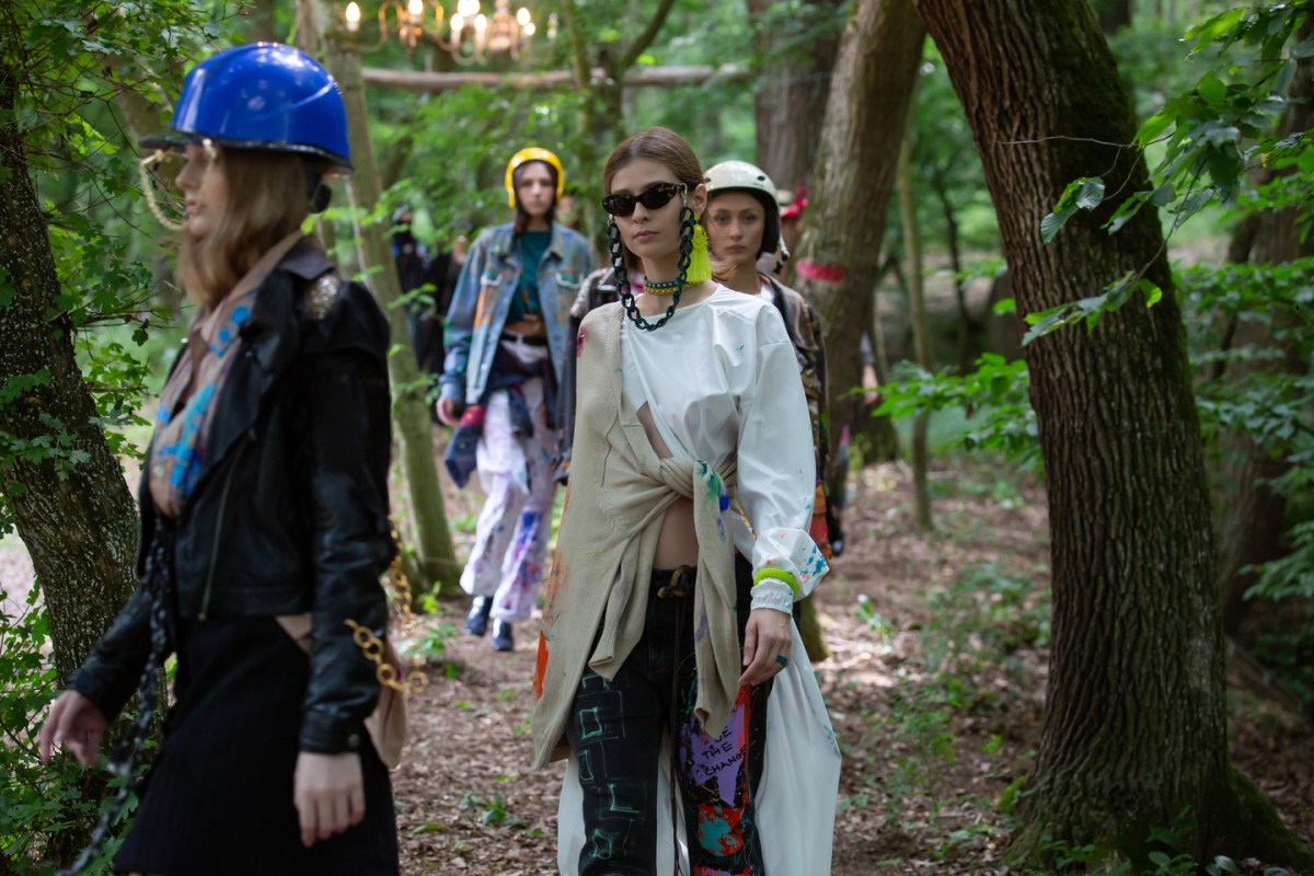 From the center of the village, the guests set off for the forest near the commune, to present the Hooldra brand. Hooldra is an upcycled clothing brand that uses old items of clothing, which are passed through the hands of artists who bring them back to life before being put up for sale again. And because Hooldra proposes a new ethical standard in fashion, sustainable and with considerable impact on the environment, the artistic moment was joined by a media campaign initiated by Feeric Fashion Week and Humane Society International in Romania, which aims to stop the use of furs and leather natural in fashion creations. Influencers and fashion journalists have joined the #furskin campaign, supporting the cessation of the practice of raising and sacrificing animals to turn them into clothing.