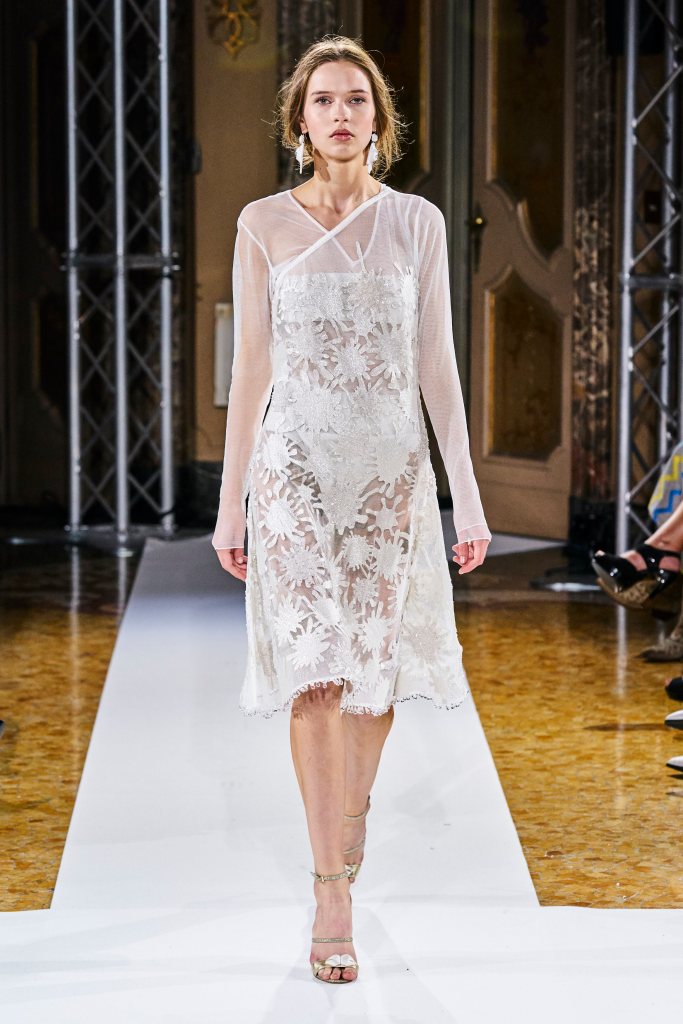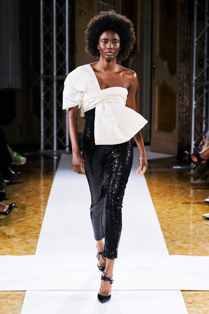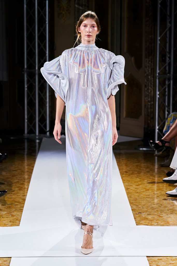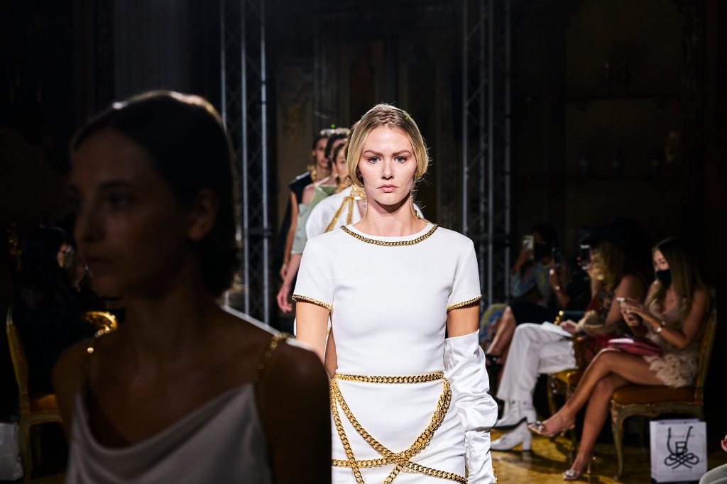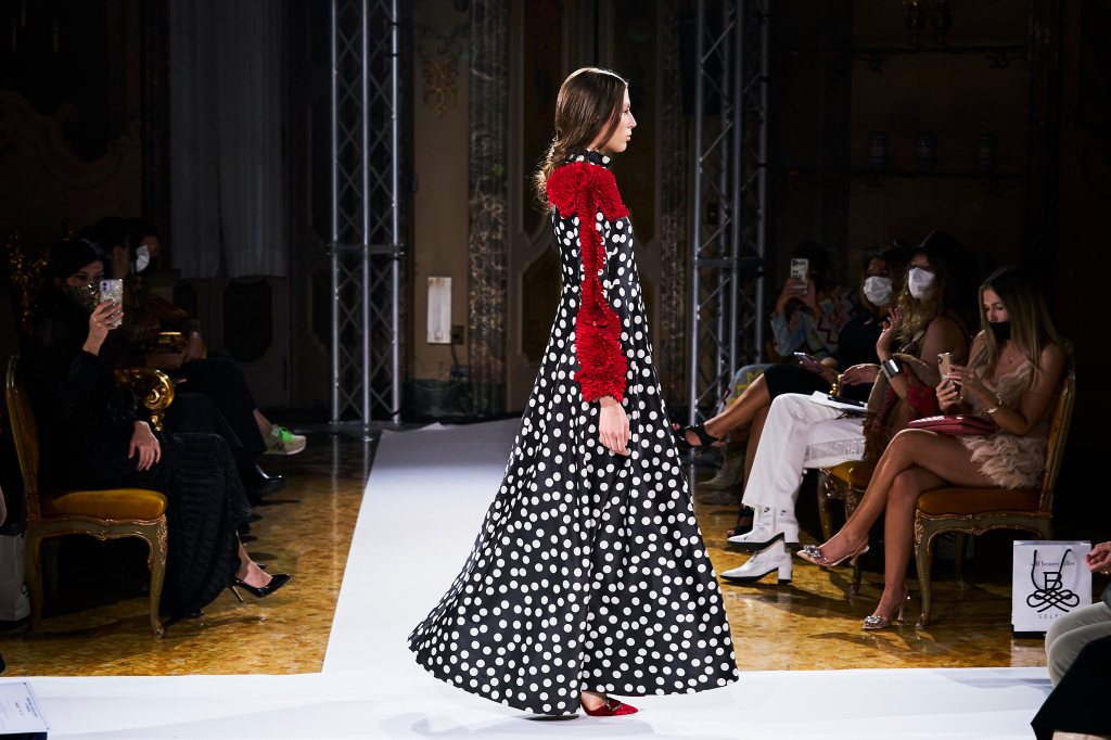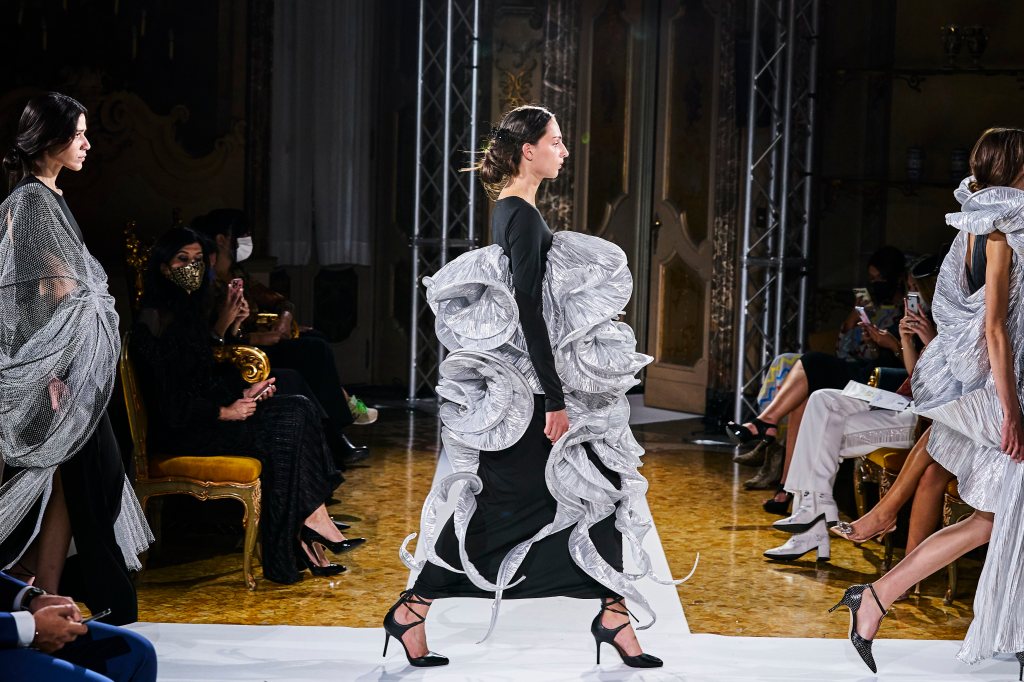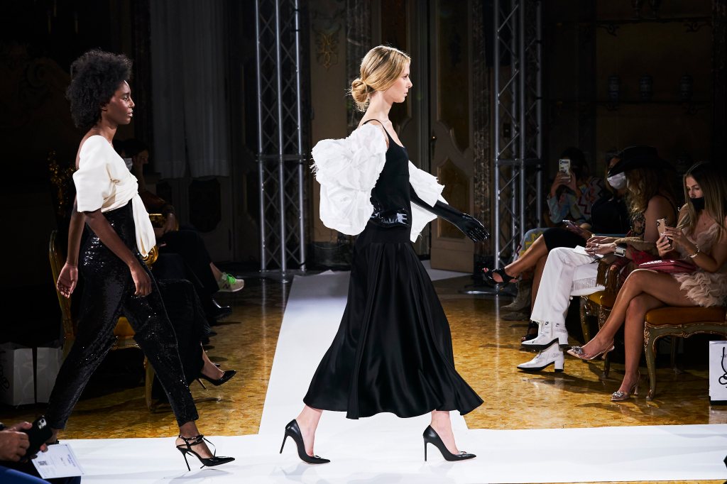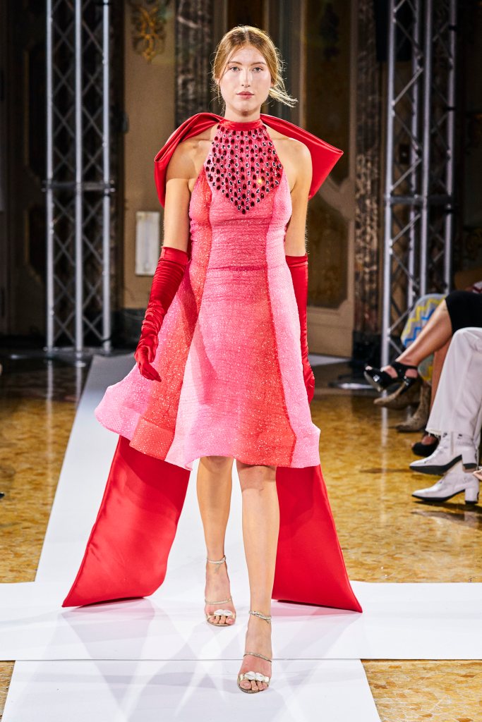 In the hands of Gianluca Alibrando, the precious fabrics take shape with a Michelangiolesque mastery, giving life to a collection suitable for all those women who want to leave their mark thanks to an elegance that amazes. The large floral decorations in satin and silk take on the appearance of flowery labyrinths, the ribbons look like butterfly wings and the sequins, like mirrors, dress the female bodies. In the same way, the rigor of the total white creations is harmoniously combined with dresses capable of shining thanks to the perfect cut and quality of the textures. From warm shades to brighter ones, the chromatic range becomes the ideal setting for a stylist who, in an impeccable way, dares with refined and unparalleled genius.