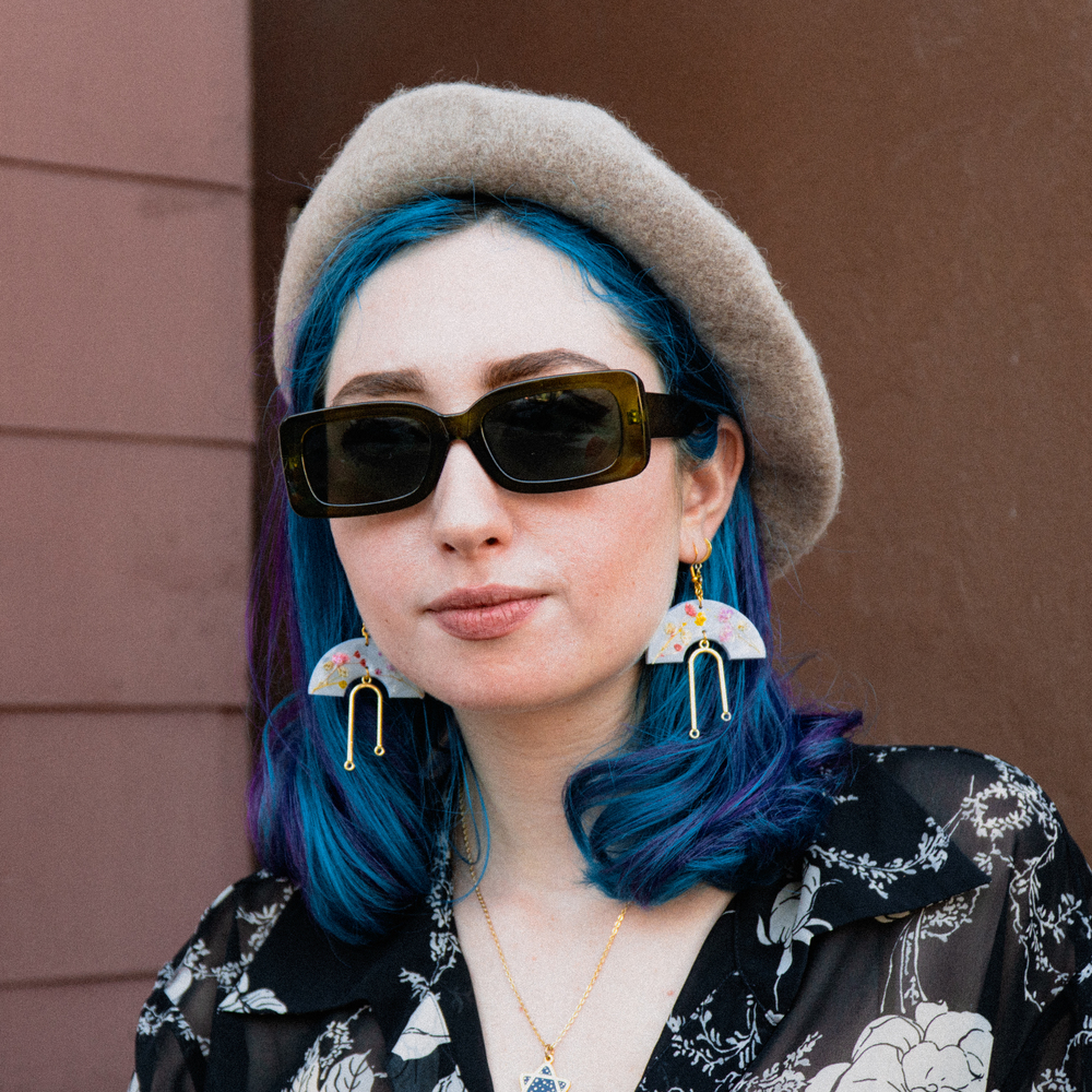 ”Growing up, I didn’t have any other Filipino American artists and designers to look up to due to lack of exposure. The goal of my brand is to make large statement jewelry for all. It’s about the diversity of folx who wear my pieces, that’s the beauty. I received a BA in Art Practice at UC Berkeley with a focus on sculpture and installation, but I fell in love with clay sculpture in high school. I’ve been working with clay as a medium ever since. When making jewelry my goal is to create large statement pieces while being as light as possible. Polymer clay was the type of clay material that helped me achieve that. I wish to share my creaions with you in the hope that you find the perfect statement piece that will best represent you and your most confident self!”