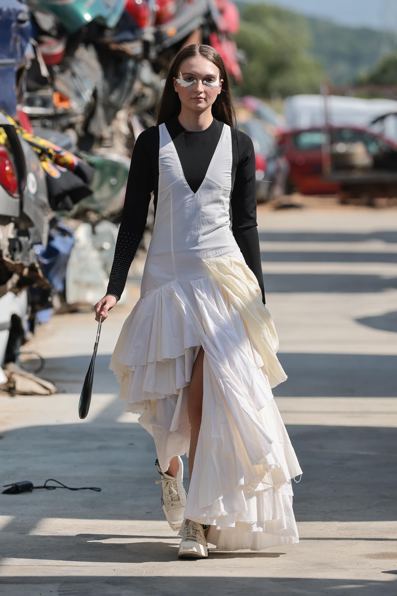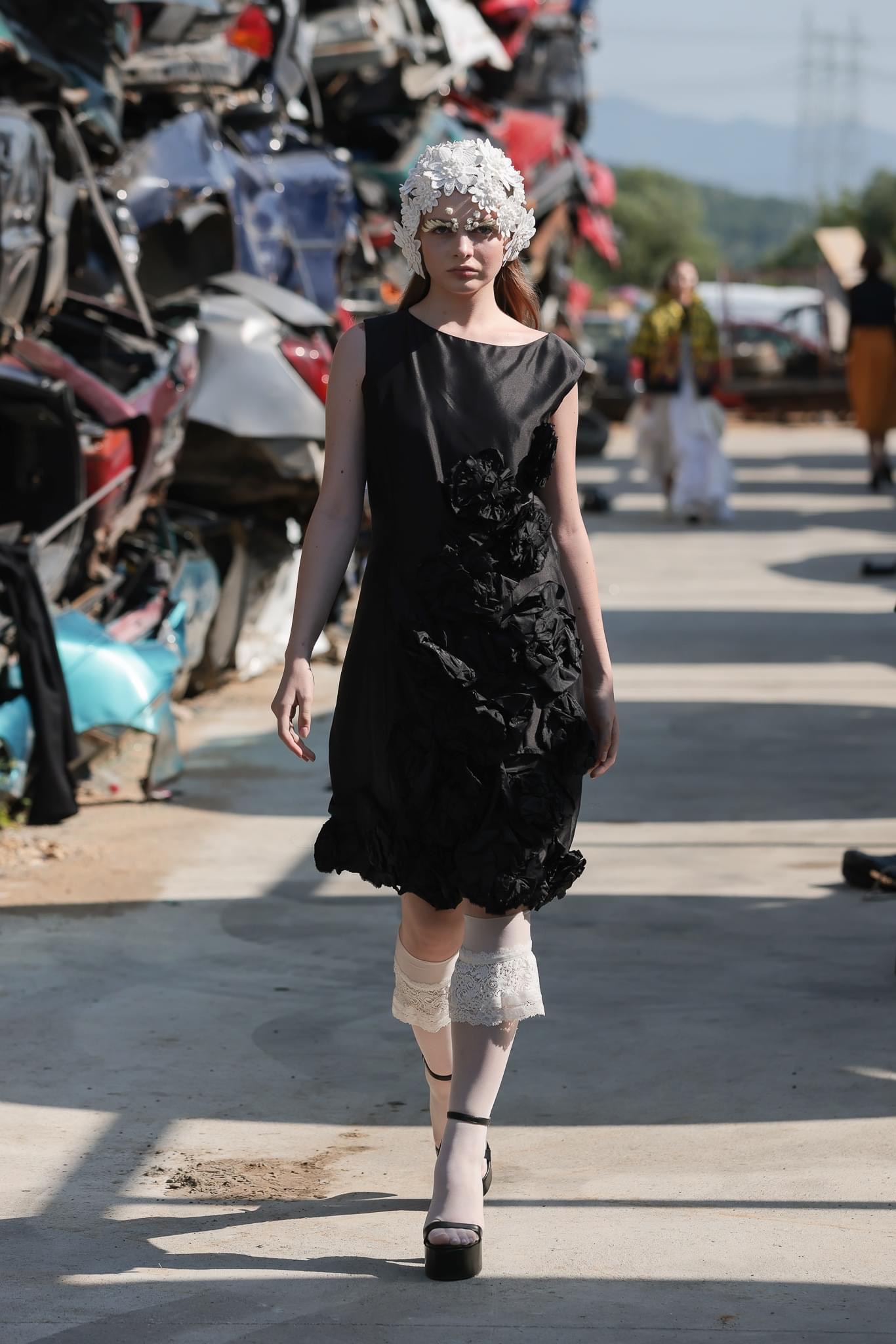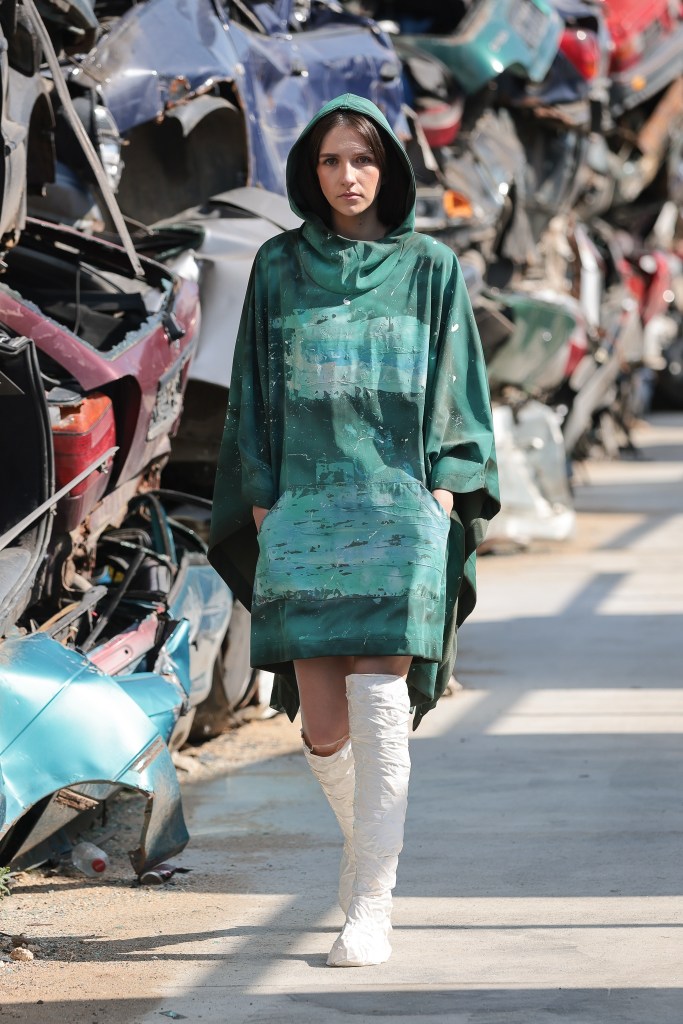 From Venue, the fashion shows moved to another unconventional space, in the Remat warehouse on the outskirts of Sibiu. Among the cars mutilated and transformed into old beasts, the pieces of DRESSINGZ Store and the new HOOLDRA collection were showcased.