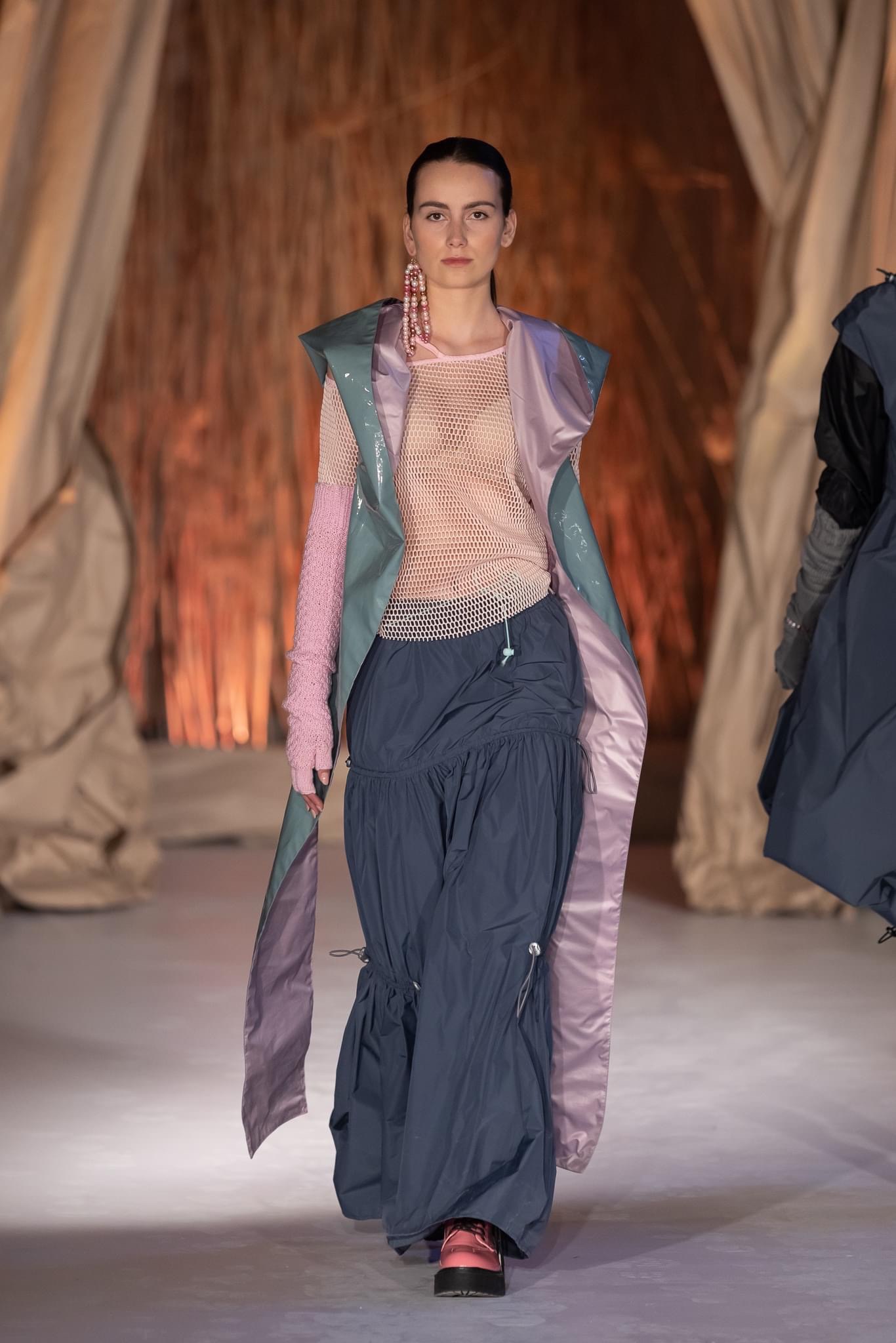 All my journey with fashion began in Poland at the Cracow School of Art and Fashion design – a private fashion school belonging to the leading European schools and part of the Krakow Art Schools run by Joanna Gaweł. In 2021, I took part with my graduation collection at the Crakow Fashion Week. The “THE OTHER SIDE OF PARADISE” collection received several awards. My collection, which is entitled “Moments”, is inspired by the moments of life that people perceive. Moments of childhood, of youth,of maturity. of changes and turns. It shows all stages of life and its colors – from carefree childhood, youthful rebellions, the world of adults, to the passing. The collection is made of dead stock materials and fabrics. Ortalion (polyamide fabric), taffeta, cotton. The colors in the collection are pink, gray and black, purple. Shades of blue appear.