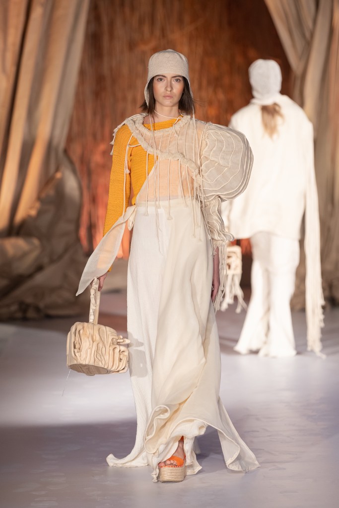 RAM is an autobiography collection that refers to the images of the author’s memory, furthermore to her connection with nature from the birthplace area. The transposition of the pieces and accessories from the collection focuses on the slow-fashion approach that includes fabrics made traditionally using looms, modifying the structure of fabrics, hand-made crocheted surfaces with natural organic threads and wooden sculpted accessories. Ramona wants to deliver a personal authentic story, a viable alternative experience to fast-fashion.