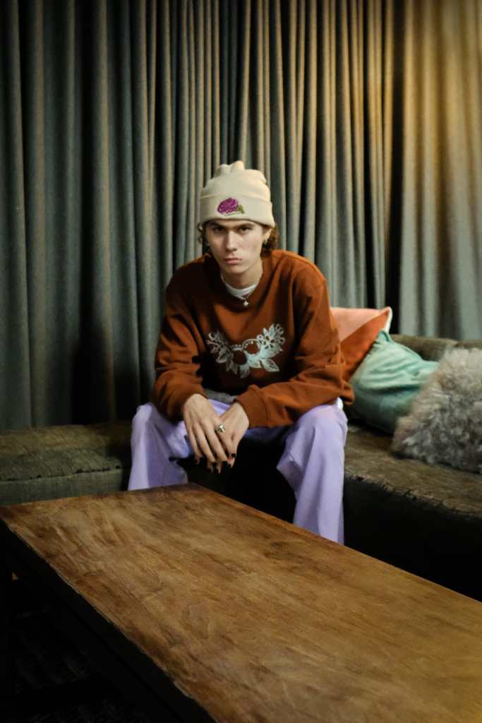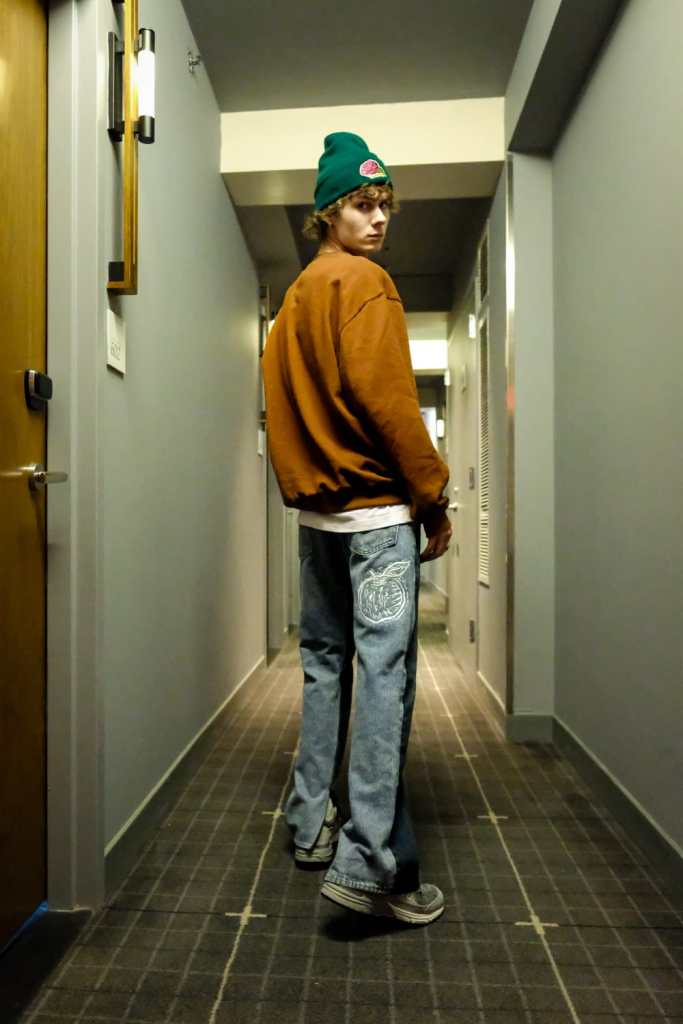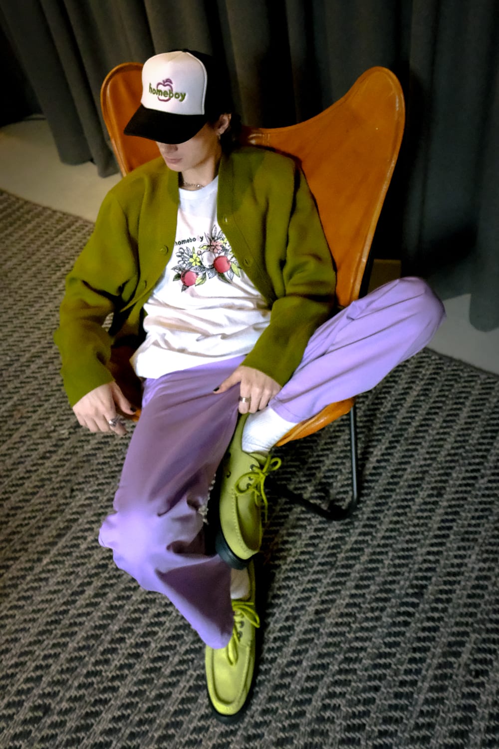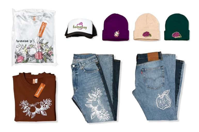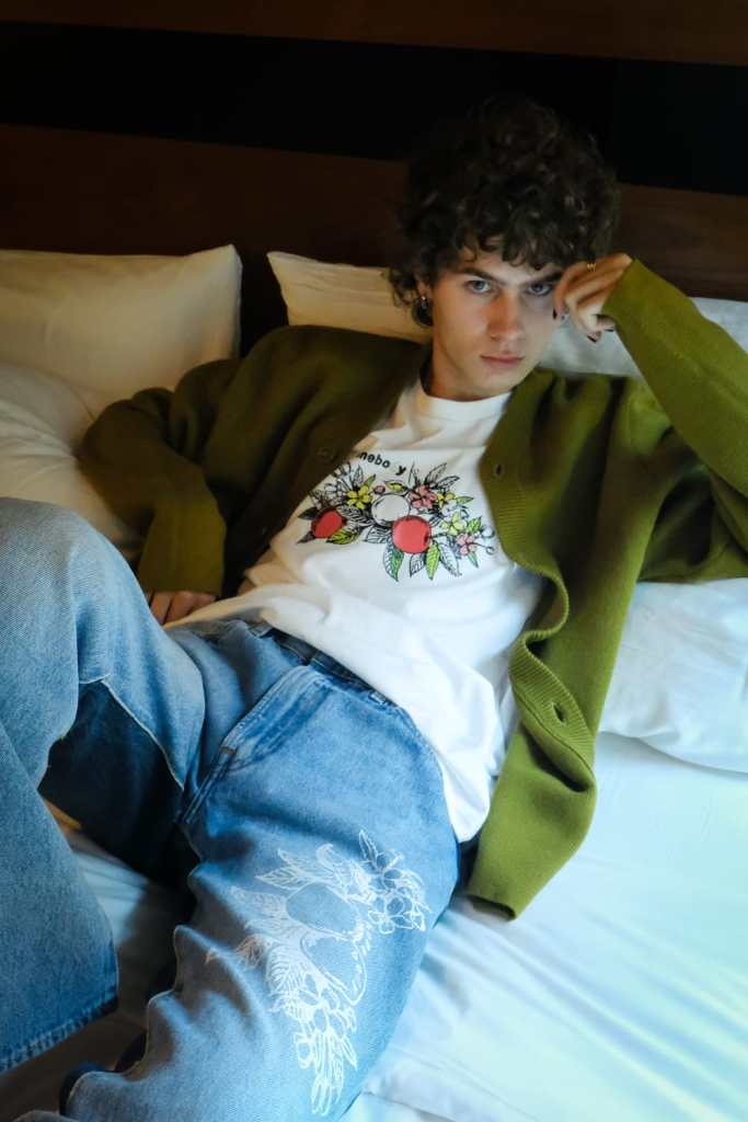 New York based label Homeboy began in 2022 created by Manse Jang, who is graphic and branding designer from Korea. His collection Homeboy has bold, vibrant, noticeable design features based on streetwear. Inspired by his cultural background and life journey, he designed and interpreted graphics that represented them. He merged apple and magnolia, which represent his hometown, and apple and rose, which reflect New York, where he started his design career, using his nature-inspired design aesthetic. Tracker hat, beanies, T-shirts, and sweatshirts more clearly show brand identity by applying intense but elegant color graphics with screen printing and embroidery. The two-toned rework inseam slit jeans additionally display Homeboy’s original fit and silhouette as well as a sophisticated and refined design with a white graphic finish.