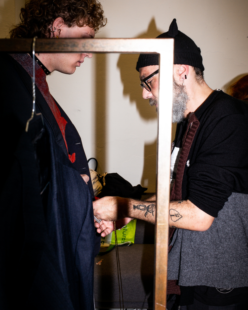 “…But No” ‘s godfather is Jamie Red, anarchic artist and Sex Pistols’ art director, that has to donate us some clothes from his brand “Ragged Kingdom,” the fashion show’s closing pieces.