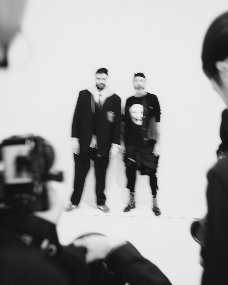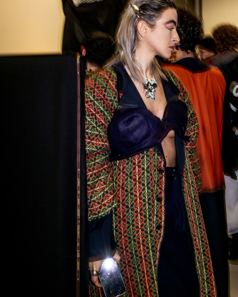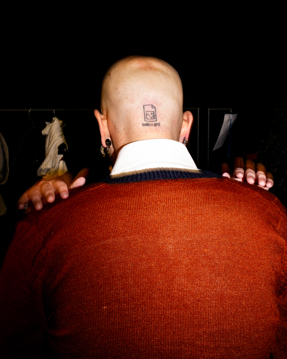 Even in this fashion show, our casting features friends of different ages, gender, and physicality: they complete their outfits with their shoes and accessories, pointing out our authenticity and willingness, up to the point where an accident has become a part of our storytelling