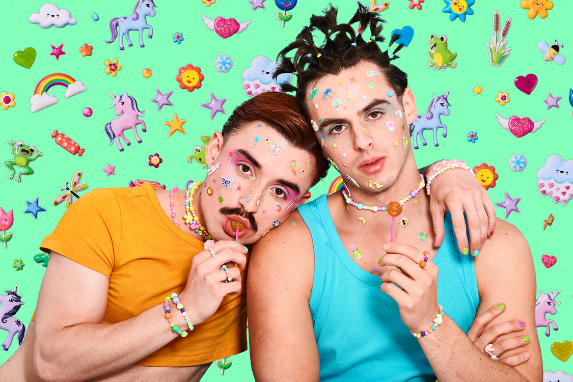 The series tells the story of a group of friends plunging back into their youthful days and living out as adults what they wish they could have experienced fully as children. Being silly, having a go at each other and getting annoyed or bored as well; all of the things young boys should explore without restraint or pressure to act or be a certain way. The makeup is deliberately simple and uneven, like how children would do it on themselves and each other for fun. Then plastering themselves with stickers as a means to integrate the cuteness they evoke into themselves.