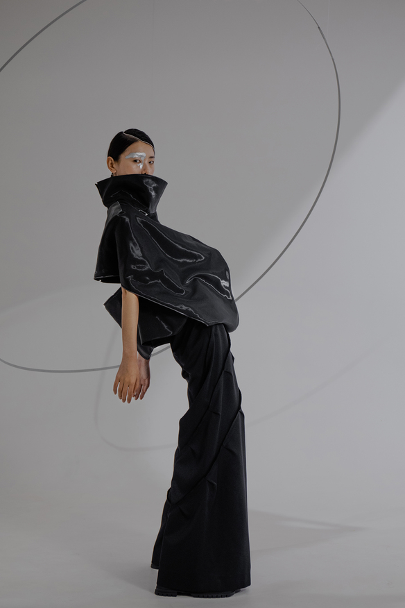 I use my designs to explore the perception of space through the language of fashion. In this way, the creations are non-traditional and unique. My work aims to present a sense of futurism and the avant-garde, because I hope they will invest in people with a sense of vision and strength for the future.