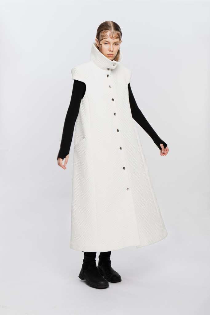 In architecture, the most important concept and element is Space. The space is the core of a building, where its function and meaning can be fulfilled. The walls around the space as well as the ceiling and floors are ancillary surfaces, serving to create this space. So in the architect’s eye, we always tend to see things from a three-dimensional and integral perspective. This way of thinking affects my view of fashion design. I see interfaces of the garments as elements of a larger whole, rather than as separate decorative surfaces.