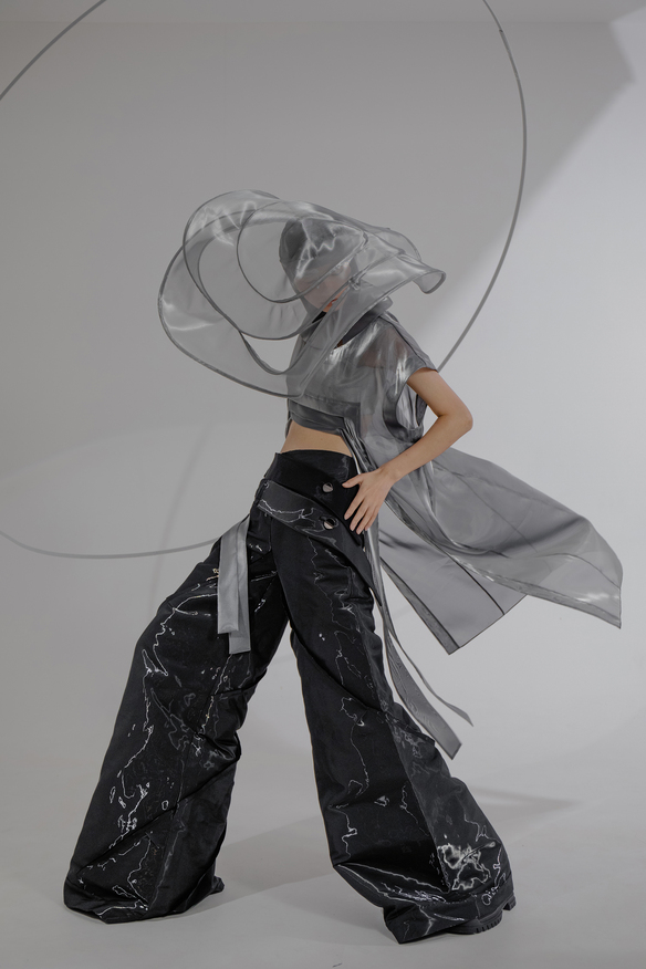 I use my designs to explore the perception of space through the language of fashion. In this way, the creations are non-traditional and unique. My work aims to present a sense of futurism and the avant-garde, because I hope they will invest in people with a sense of vision and strength for the future.