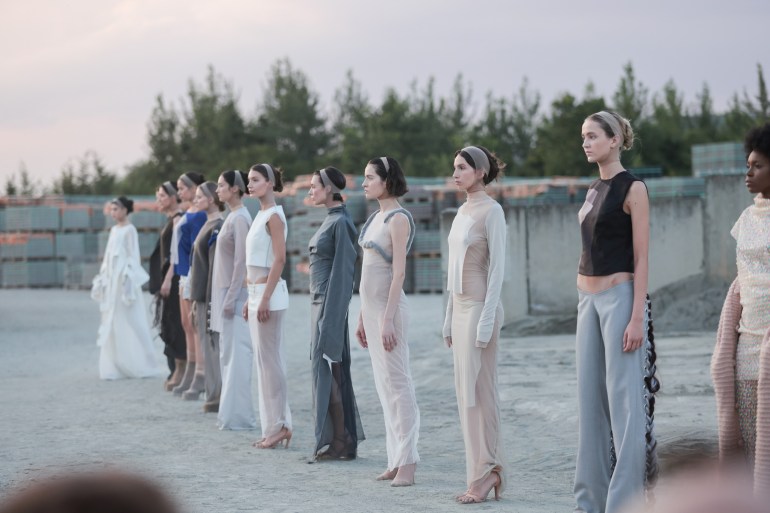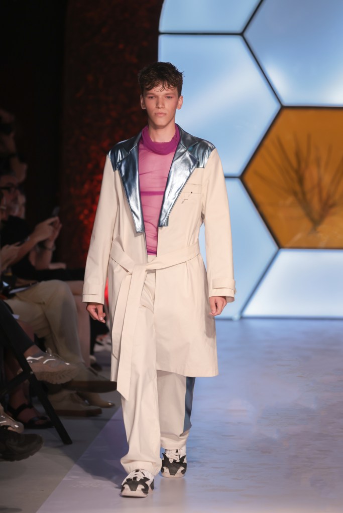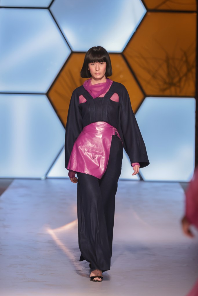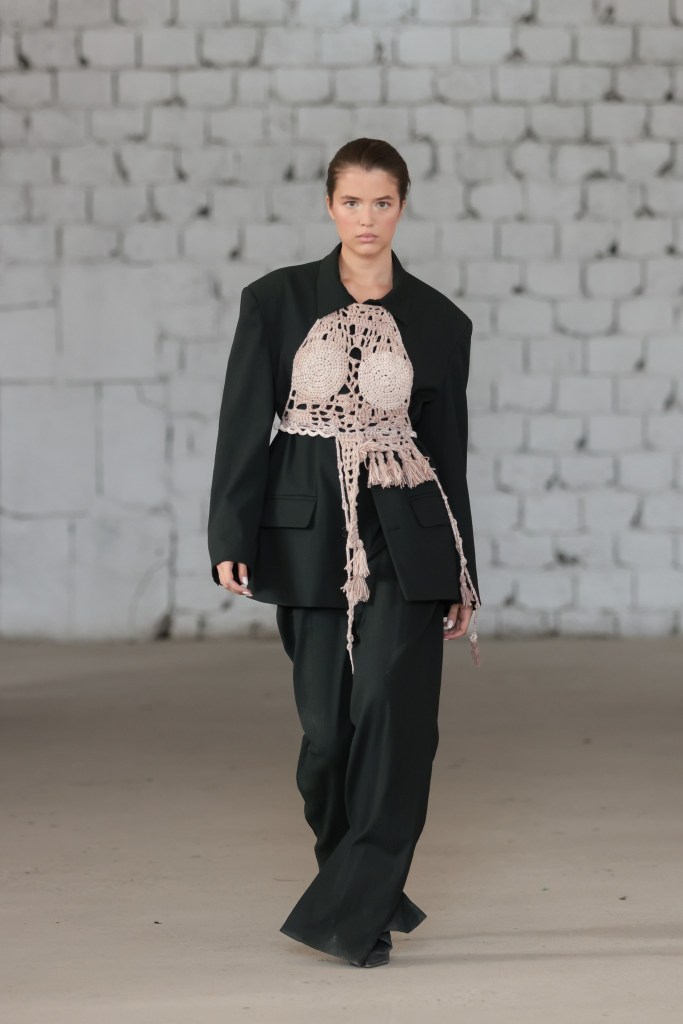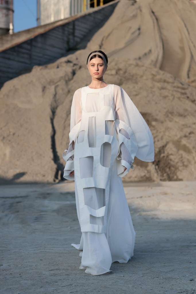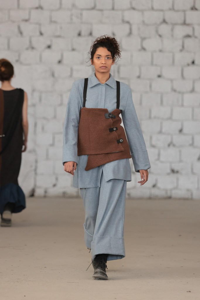 Then, Sophia Katsimicha, representing Athens Fashion Club, delighted the audience with a collection inspired by a hybrid between the designer’s search for individuality through dystopian aesthetics, tradition and a slow approach to creating in an era of industrialization. The collection is deeply driven by texture, fabric, color, detail and silhouette, capturing an aura of simplicity and thoughtful sensibility.