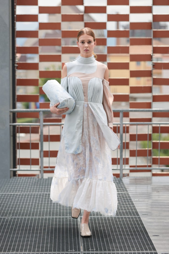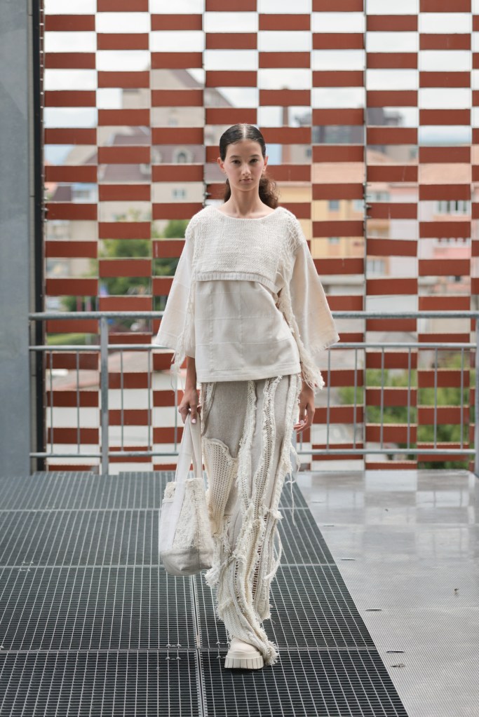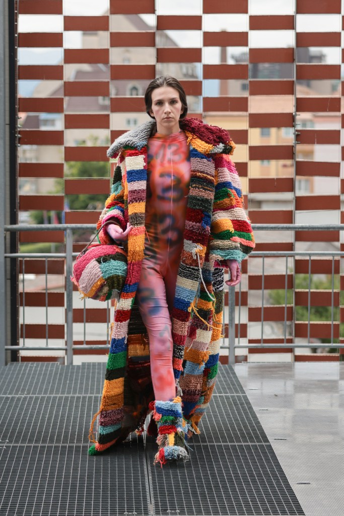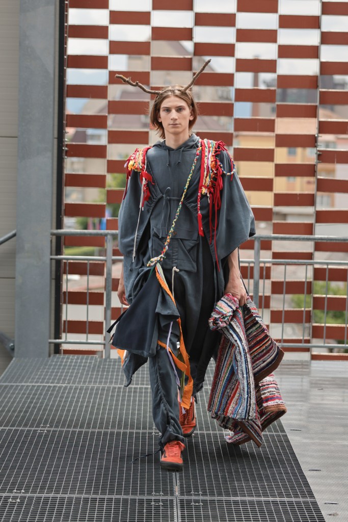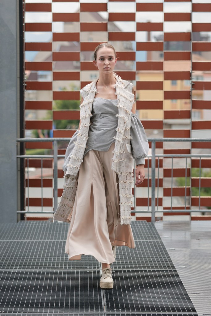 The last presentation of the day brought the guests of the fashion week from Sibiu to the Prodial sorting station in Tălmaciu, where it was the turn of the students of the University of Arts in Belgrade to present their works from their years of study. The collection titled ’24’ explores the intersection of fashion and the performing arts, embodying avant-garde characteristics – challenging existing structures, breaking norms and embracing open and non-committal forms. The “24” in the collection symbolizes a personal connection, as it reflects the designer’s years at the time of his creative beginning – maturing, exploring personal desires, fears, dreams and values, and undergoing internal transformations during this phase of life.