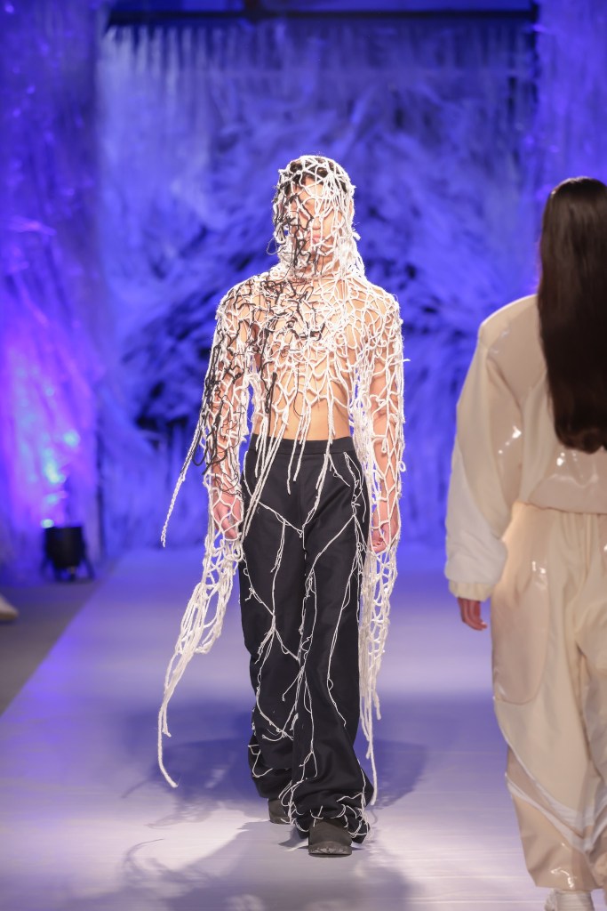 Karolina Siek, Collection “MENTAL SIDE”:The MENTAL SIDE collection, inspired by ADHD, confronts the problem of social ignorance and the resulting perception of the attention deficit hyperactivity disorder, mainly as a childhood disorder, with the real, multidimensional structure of the phenomenon. The collection combines original construction solutions, machine embroidery technique and embroidery on hydrophobic foil and includes original handmade crochet accessories.