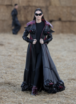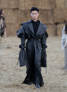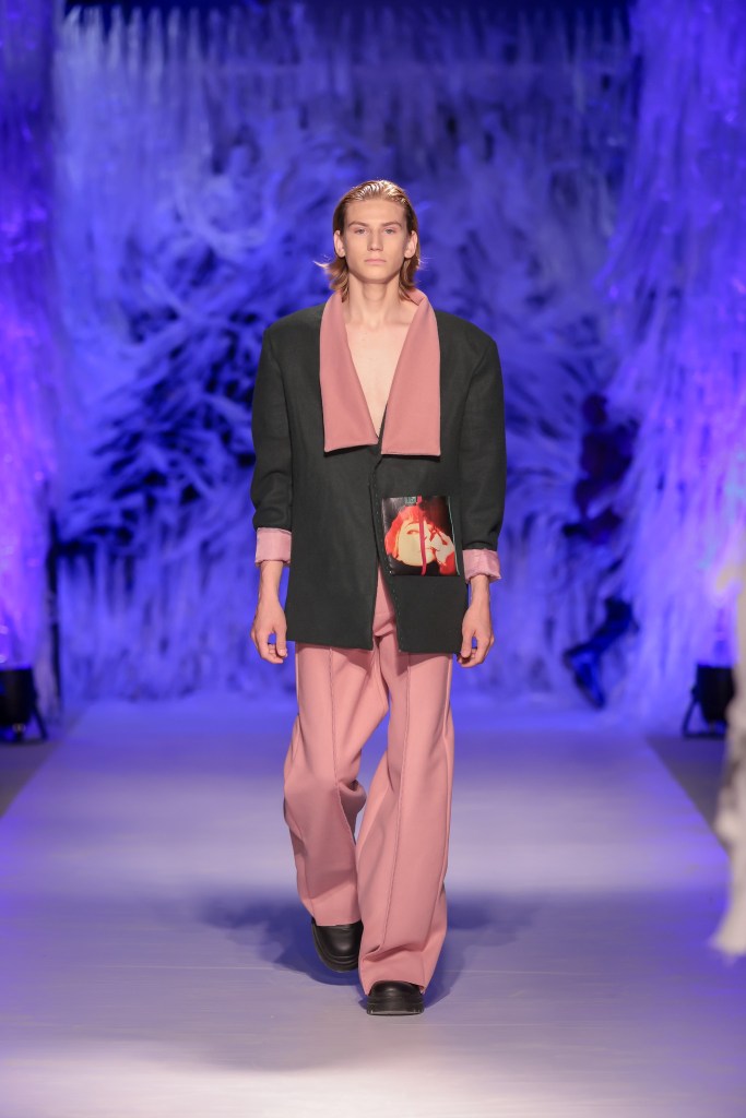 Alicja Zdral, Collection “ÆNTRO”: The theme of the collection is entropy and man set against the backdrop of Bauman’s liquid modernity. The designs were made mainly of natural fabrics as well as biofabrics in the form of kombucha leather and bioplastic from own experiments. They were subjected to the process of dyeing with plant-made dyes. The silhouettes combine the techniques of felting, draping and original design solutions.