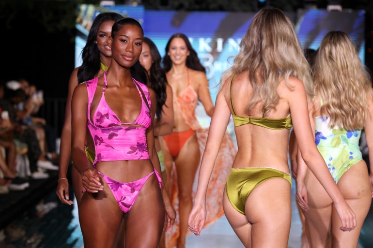 MIAMI BEACH, FLORIDA – JUNE 02: A model walks the runway for Bikinis by Bridget during Miami Swim Week: The Shows at SLS South Beach on June 02, 2024 in Miami Beach, Florida. (Photo by Thomas Concordia/Getty Images for Miami Swim Week: The Shows)