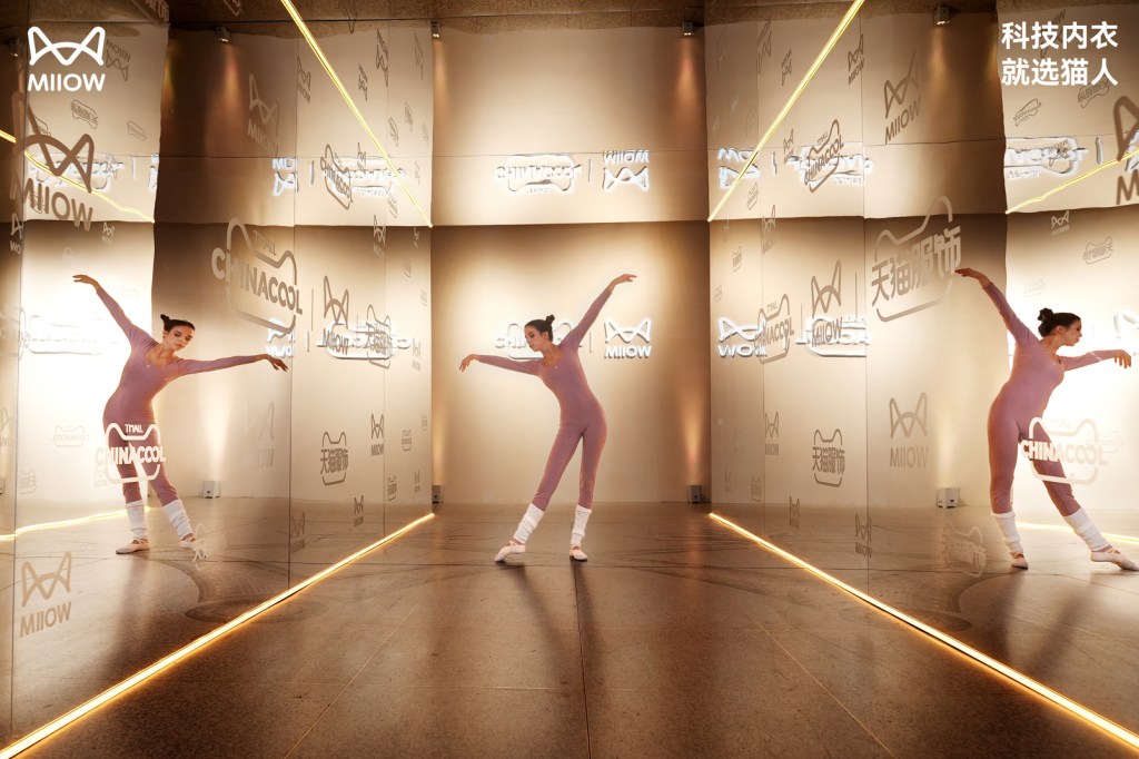 Adding a dynamic flair to the exhibition, a troupe of internationally acclaimed modern dancers transformed the space into a stage of ephemeral beauty, performing a captivating “heat ballet” clad in bespoke Miiow Heat 8 Degrees dancewear. Their choreography, a synthesis of extreme flexibility and kinetic energy, mirrored the innovative spirit behind Miiow’s fabric technology, blending the worlds of fashion and performance art in an unforgettable spectacle.