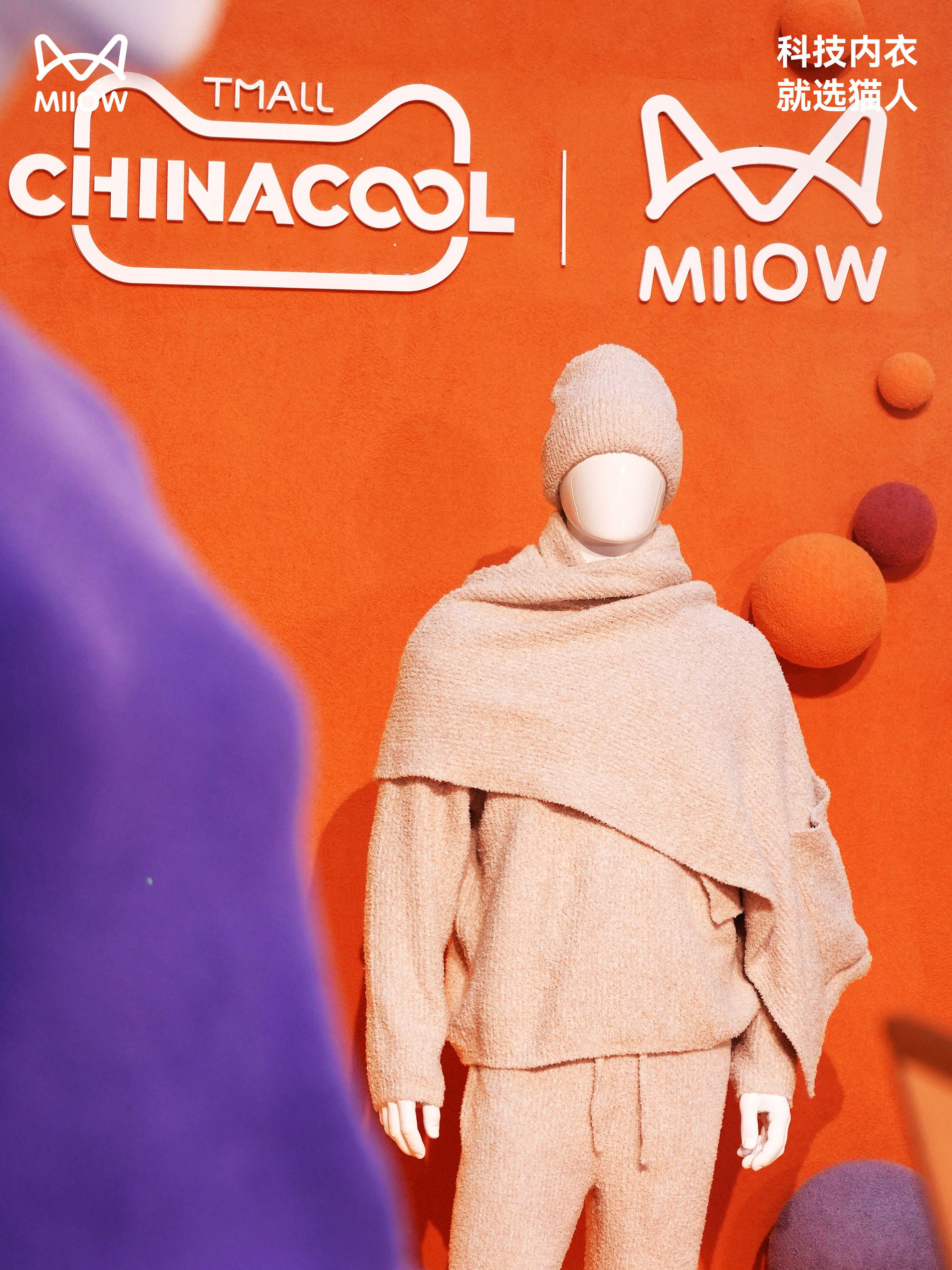 But the creativity didn’t stop there. The exhibition also introduced an AI-generated fashion collection developed in collaboration with Tmall Innovation Center (TMIC). This unique series combined hollow interwoven designs with Miiow’s Heat 8 Degrees technology, resulting in garments that visually represented warmth and craftsmanship while pushing the boundaries of abstract expression.