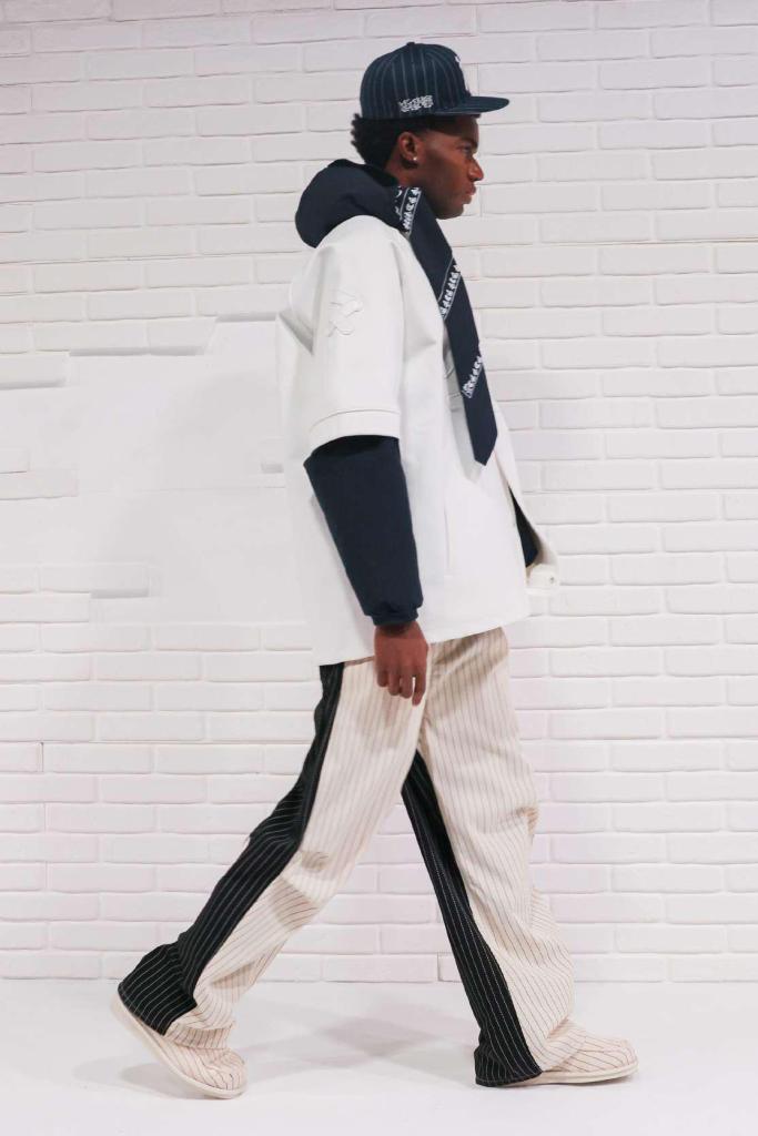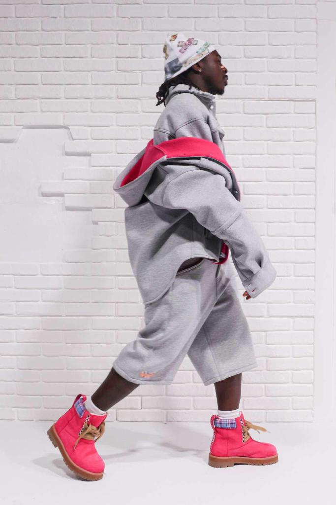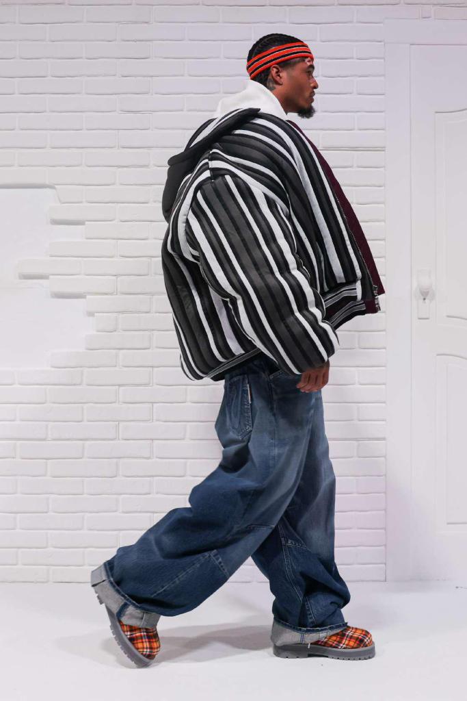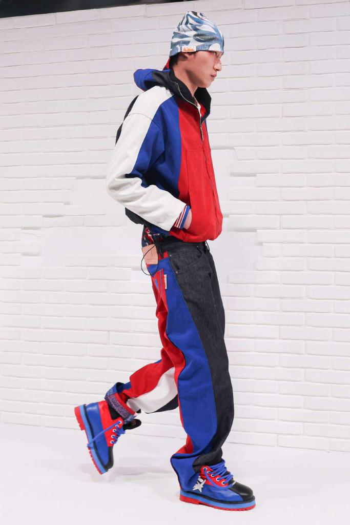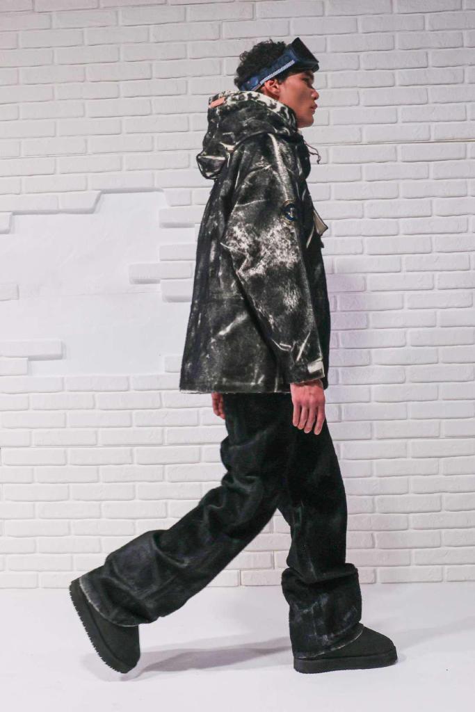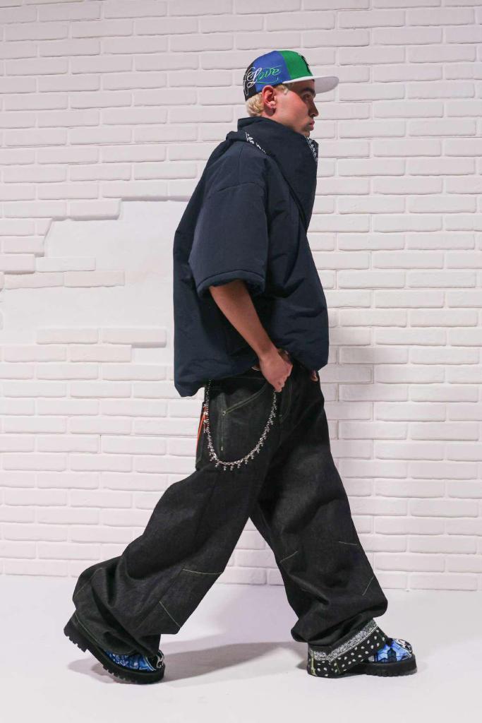 But despite this, it was not a banal nostalgic act, but rather it was the designer’s desire to bring garments from the past into the present so as to create something new that makes them futuristic. The intent is to open a cultural dialogue between the influences he experienced as a young man and the youth of today. All this happened through the fusion of two apparently distant worlds such as hip hop and snowboarding, mixing symbols of the first such as timberland and oversized jeans with garments closer to the second, such as Napapijri jackets.