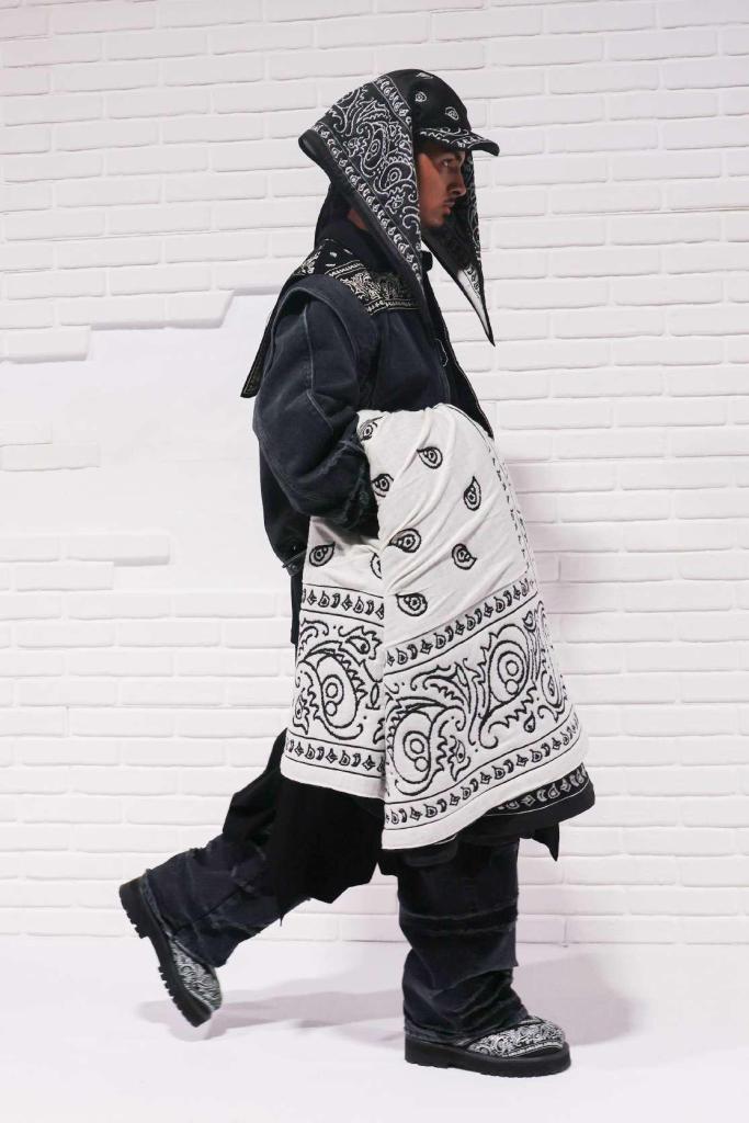 The result is a collection that blends the practicality and functionality of outdoor sports with the liveliness of 2000s hip hop style and therefore with continuous references to stripes, checks, bandanas, camo prints and bright colors. Thus the jackets vary from oversized bomber jackets to mountain cargo jackets, up to Dainese jackets, customized with paint. Furthermore, we have seen some out of the ordinary pieces, such as the tank top made entirely of cardboard. The cast perfectly recalls what Formichetti wants to tell, both for the faces and the attitude. With a street attitude that seems arrogant and challenging, the models perfectly embody those American kids for whom their way of dressing was not just for aesthetics, but was an armor to challenge the world and therefore an act of rebellion.