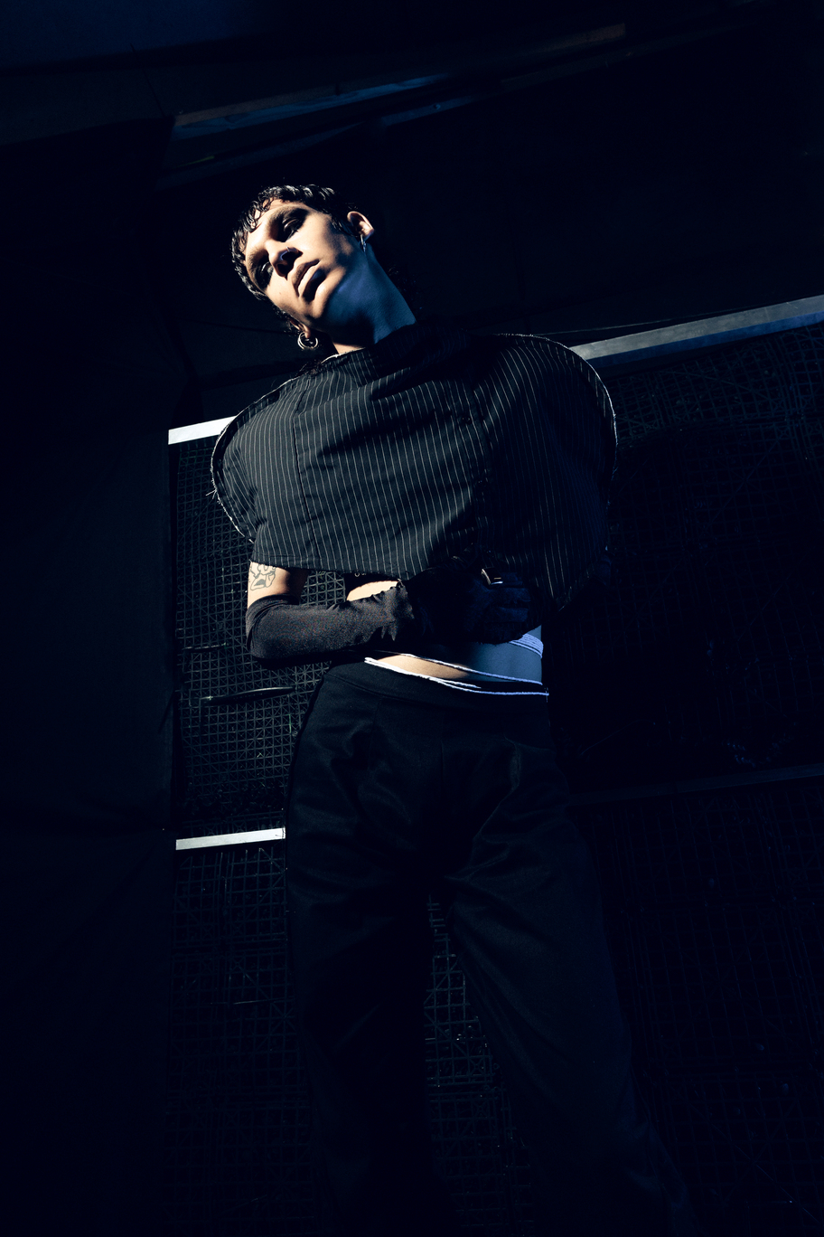 Iannis – Top: Angela Azamfirei x Hooldra – Pants: Mad House – Gloves: Alexandra Tigaeru
