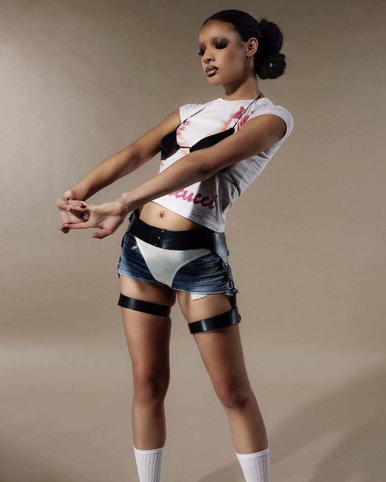 T-shirt : @erosvintageparis – Bra + harness : @ichor_creation – Shoes – Converse : @kiloshopfrance