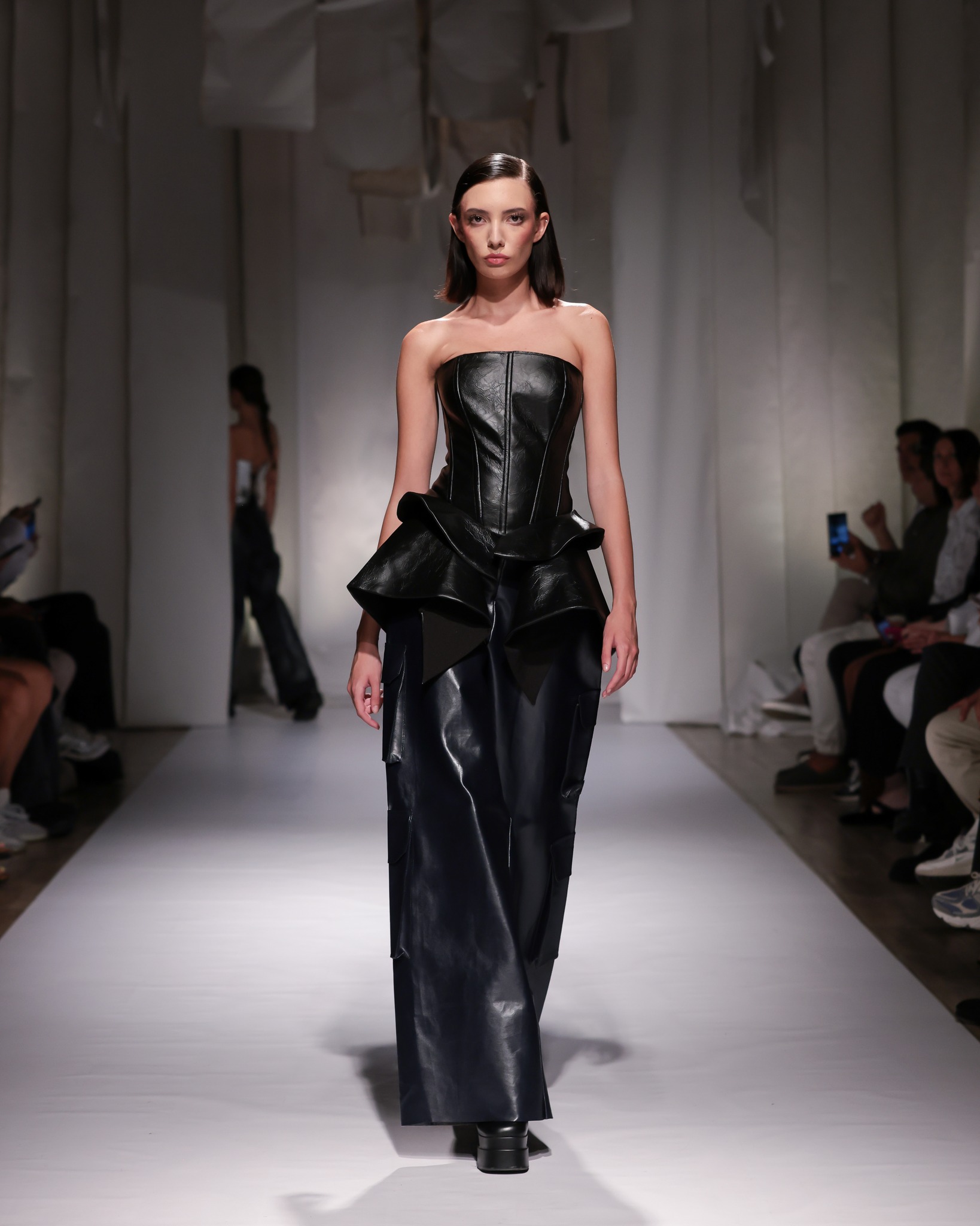 Rounding off the university presentations, Notre Dame University – Louaize delivered “Prism Thinking,” a powerful commentary on resilience illustrated through sculpted corsets and contrasting materials. This collection not only showcased technical mastery but also highlighted the resilience of the human spirit, demonstrating how beauty can emerge from adversity.