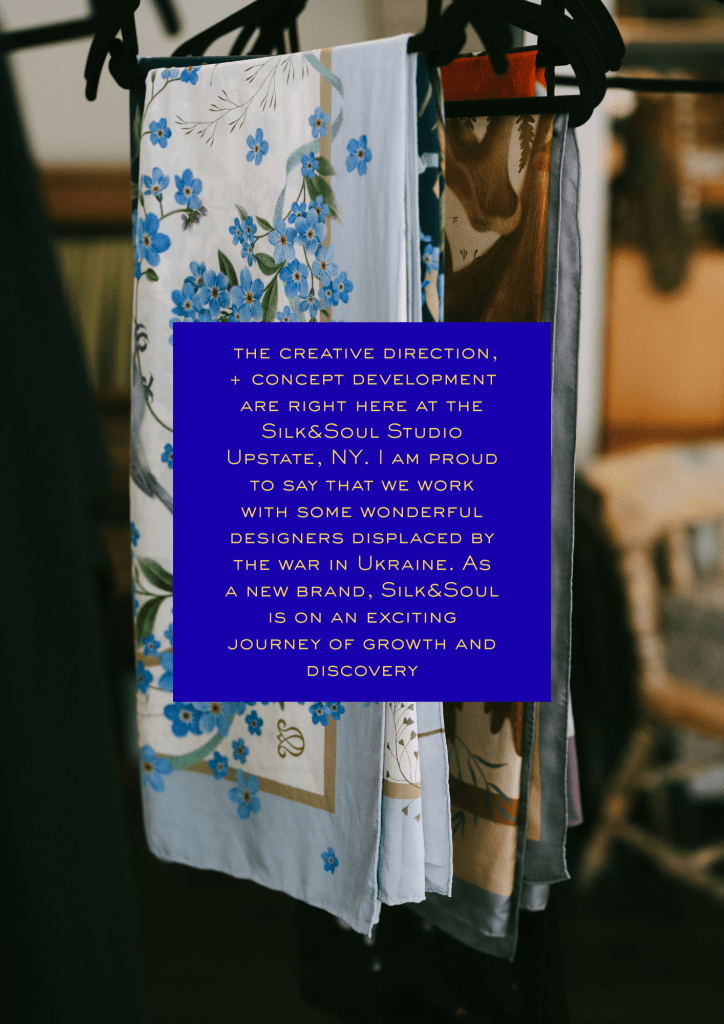 Katya Krenina: All creative direction and concept development happen at our Silk & Soul Studio in Upstate New York. I work with a team of talented designers, some of whom have been displaced by the war in Ukraine. Navigating the complexities of production has taught us invaluable lessons, allowing us to deepen our commitment to sustainability and quality. Each challenge shapes our identity as we prioritize ethical practices while delivering exceptional craftsmanship.