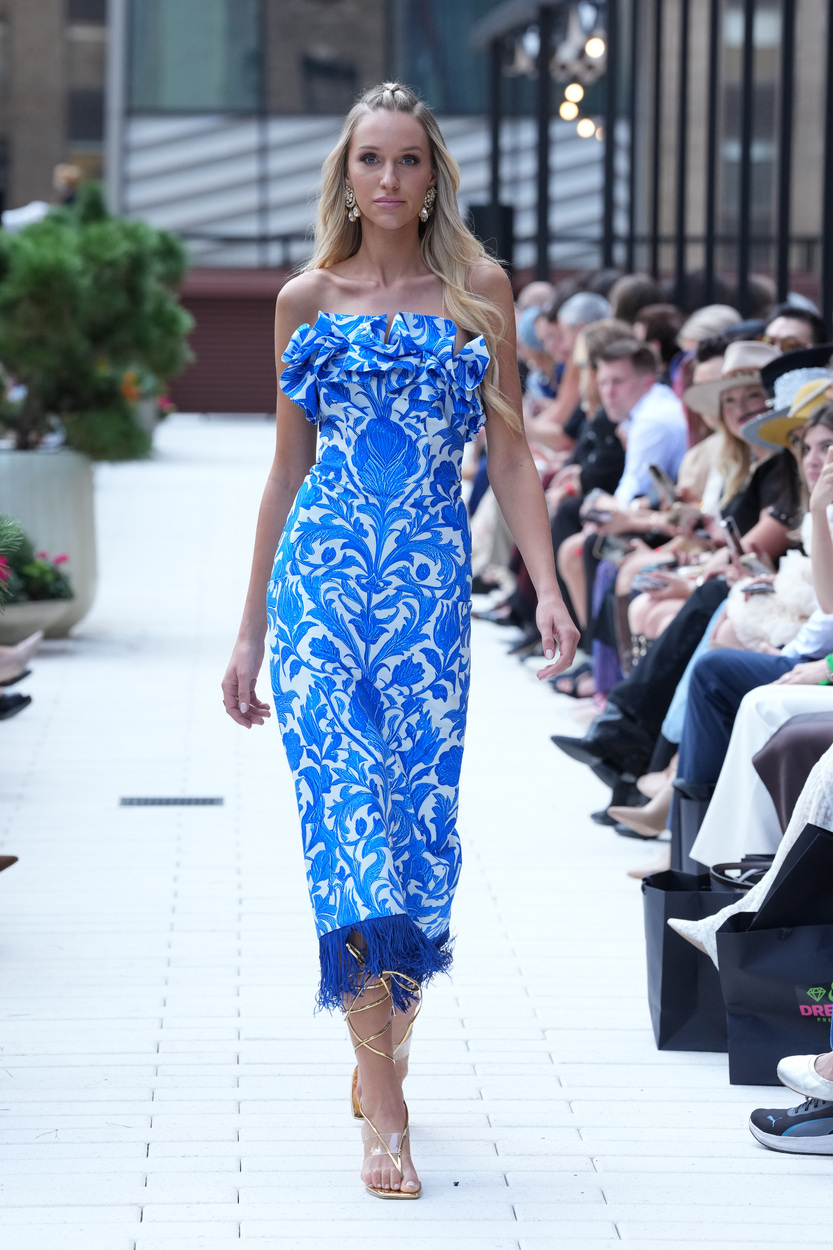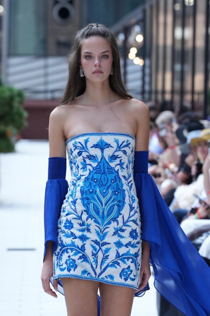 Under the luminescent lights of the runway, the collection unfolded in a breathtaking display segmented into four artistic capsules: Coastal Daydream, Sun-Kissed Mosaic, Aegean Nights, and Islands in Bloom. This thematic division not only showcased the diversity of the collection but illuminated the intricate storytelling woven throughout each design.