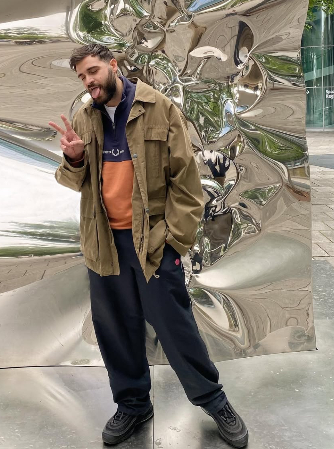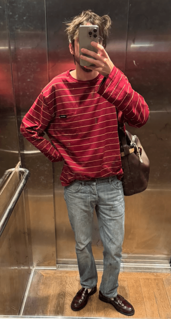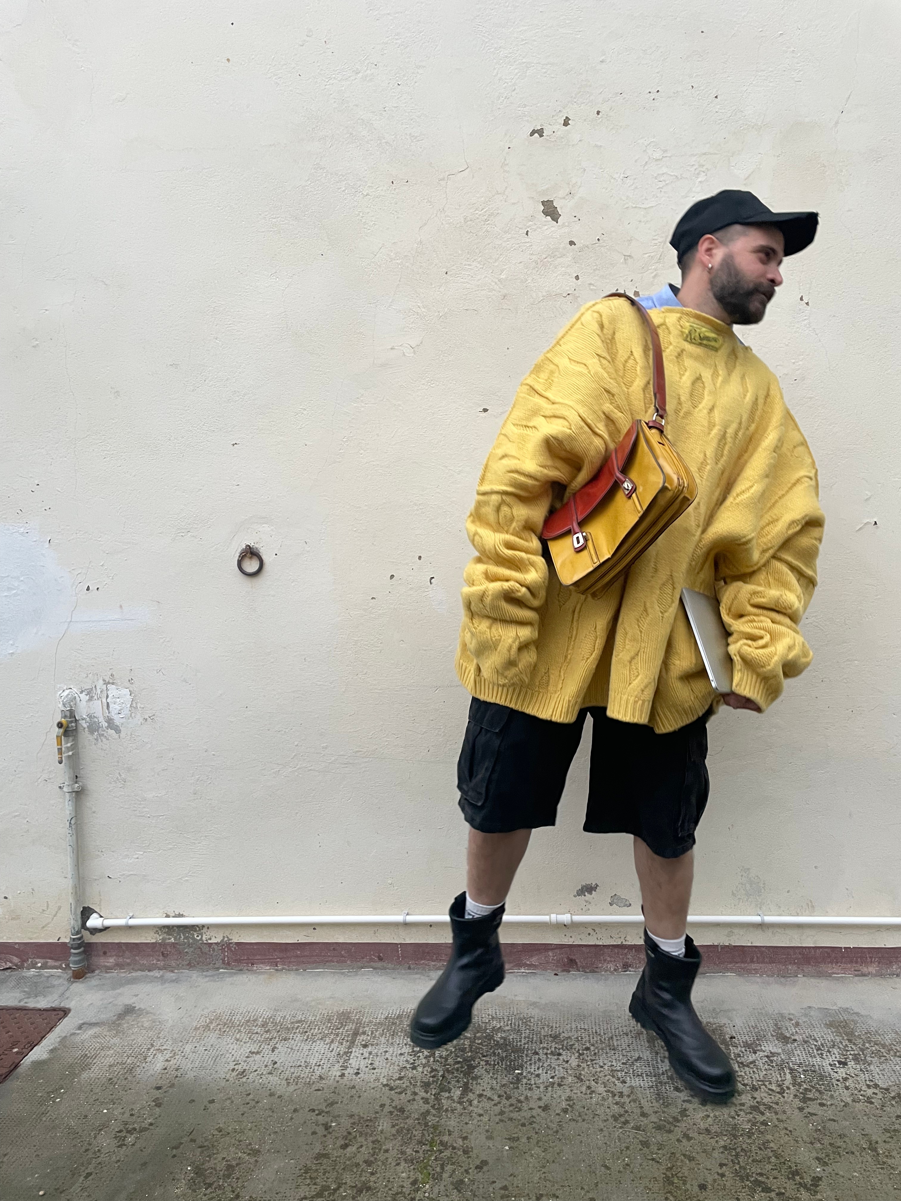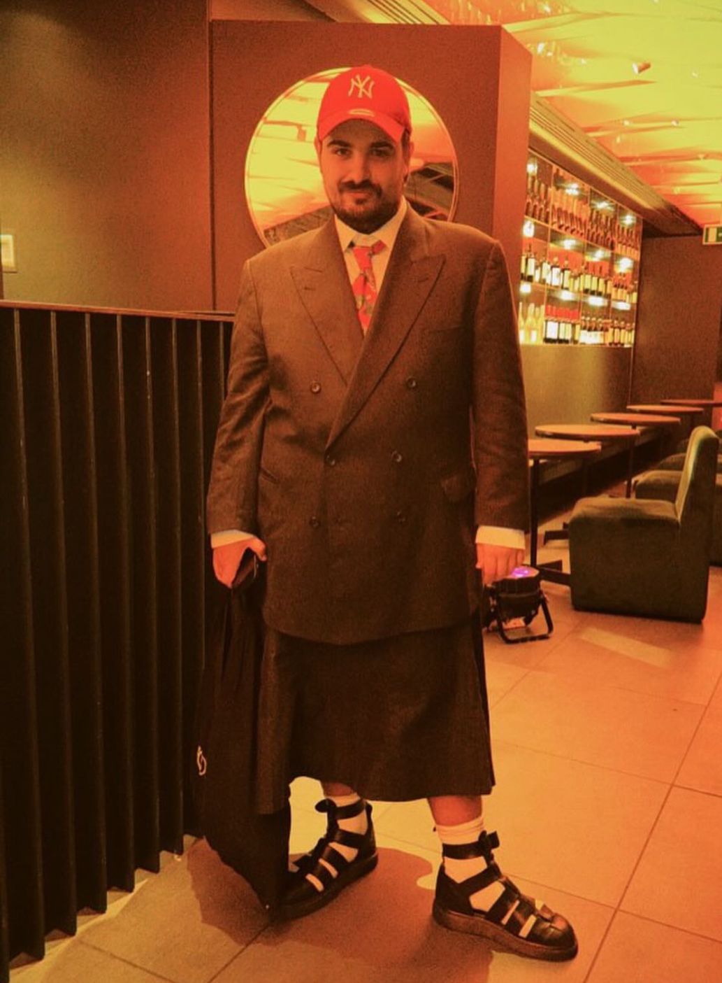 Non c’è qualcosa o qualcuno a cui mi ispiri, da che ho memoria vesto oversize, a volte al limite del talare. Cerco l’over sia nel formale che nel casual e, in base al grado di formalità dell’evento tendo a essere sempre più informale. Adam Sandler alleggia nel mio immaginario, ma non mi ispiro a nulla. Ma qualcuno si ispira veramente a qualcosa per uscire? Vorrei avere il tempo di ispirarmi ma ne ho poco e mi vesto pressoché uguale ogni giorno.