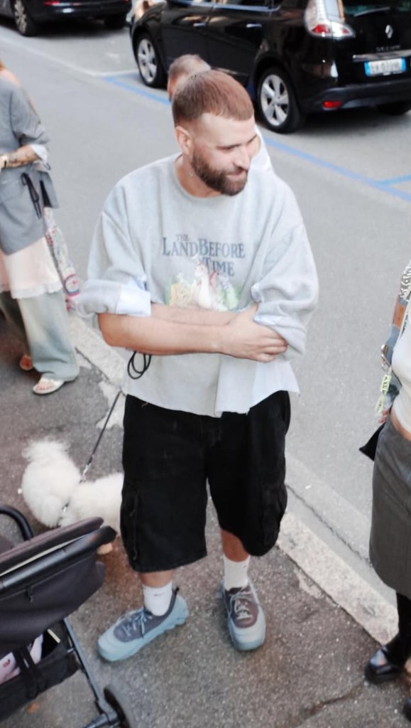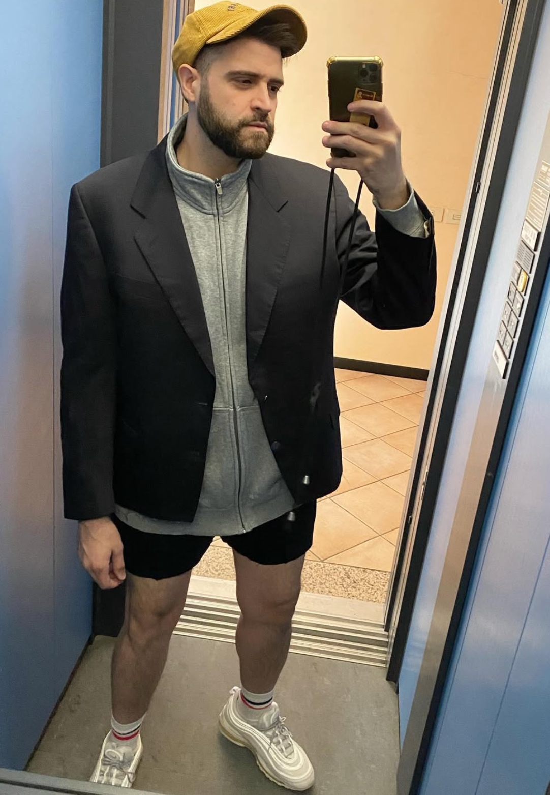 Con la mia uniforme da ormai una decina d’anni: cargo camo, felpa XXXL grigia, baseball cap con qualche ricamo e sneakers. Adam Sandler core, ma in Piazza Cinque Giornate.