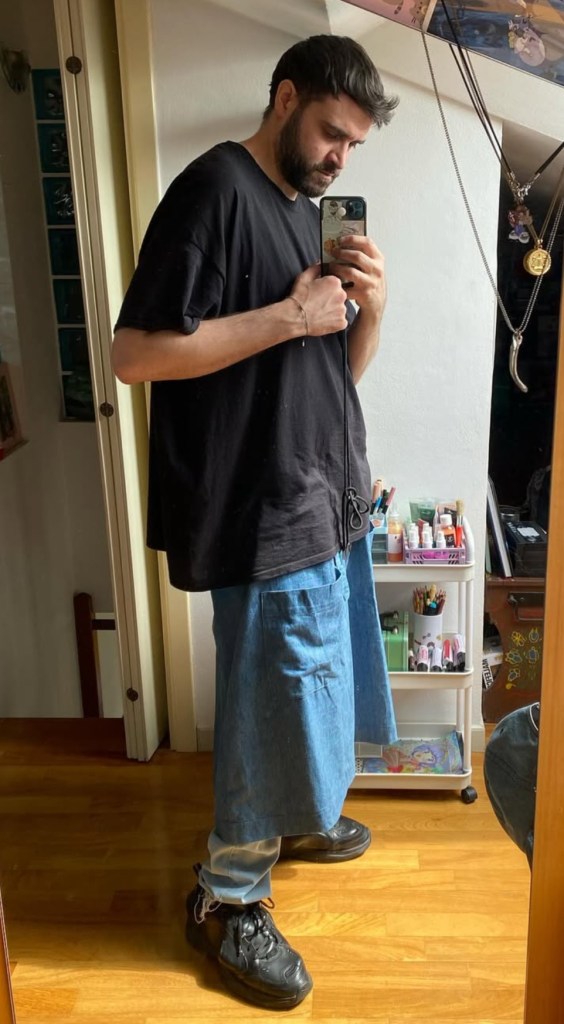 Può sembrare una contraddizione con la risposta precedente ma, nonostante la terapia, il giudizio altrui rimane importantissimo (grazie body dysphoria, grazie capitalismo, grazie fiera della vanità). Tutta la mia confidence svanisce nell’istante in cui qualcuno storce il naso per qualcosa che indosso. Al contempo mi diverte se qualcuno trovi assurdo o osceno ciò che indosso e magari lo indosso apposta. Un vestito è un po’ come un coltello che non sempre impugni dalla parte del manico.