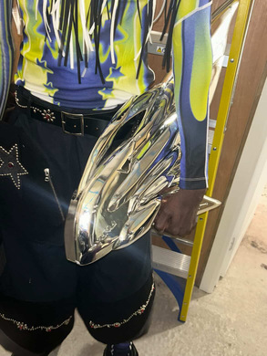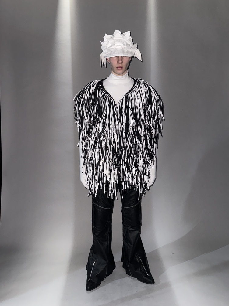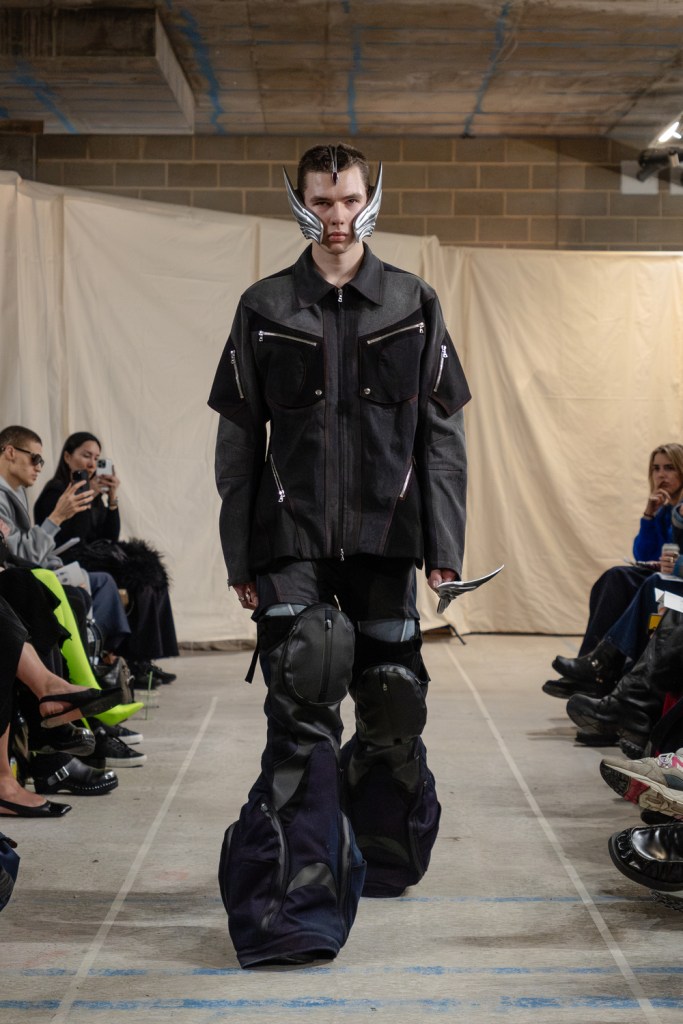 ”This collection embodies my exploration of industrial armor and transformation, pushing the boundaries of traditional garment construction.”